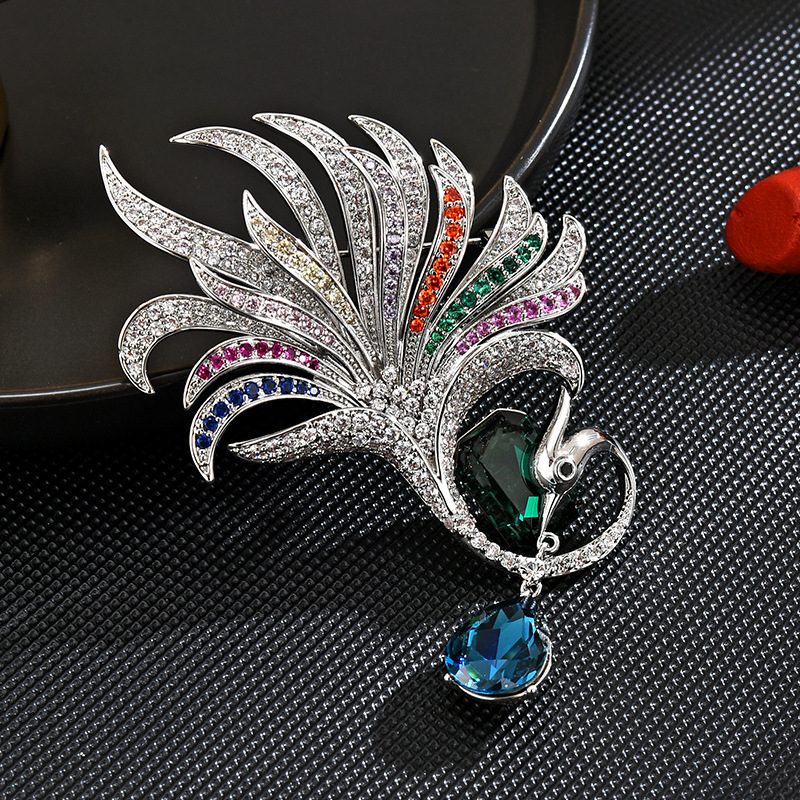 Broche de zircon cubique, laiton, fleur, Plaqué de platine, avec zircone cubique, plus de couleurs à choisir Vendu par PC