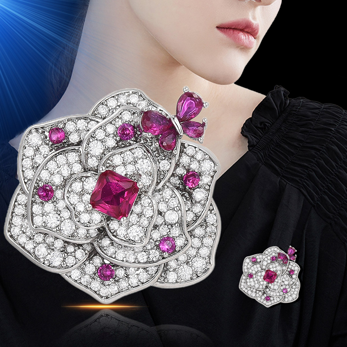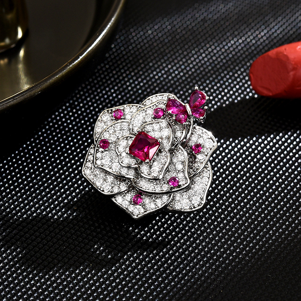 Broche de zircon cubique, laiton, fleur, Plaqué de platine, avec zircone cubique, plus de couleurs à choisir Vendu par PC