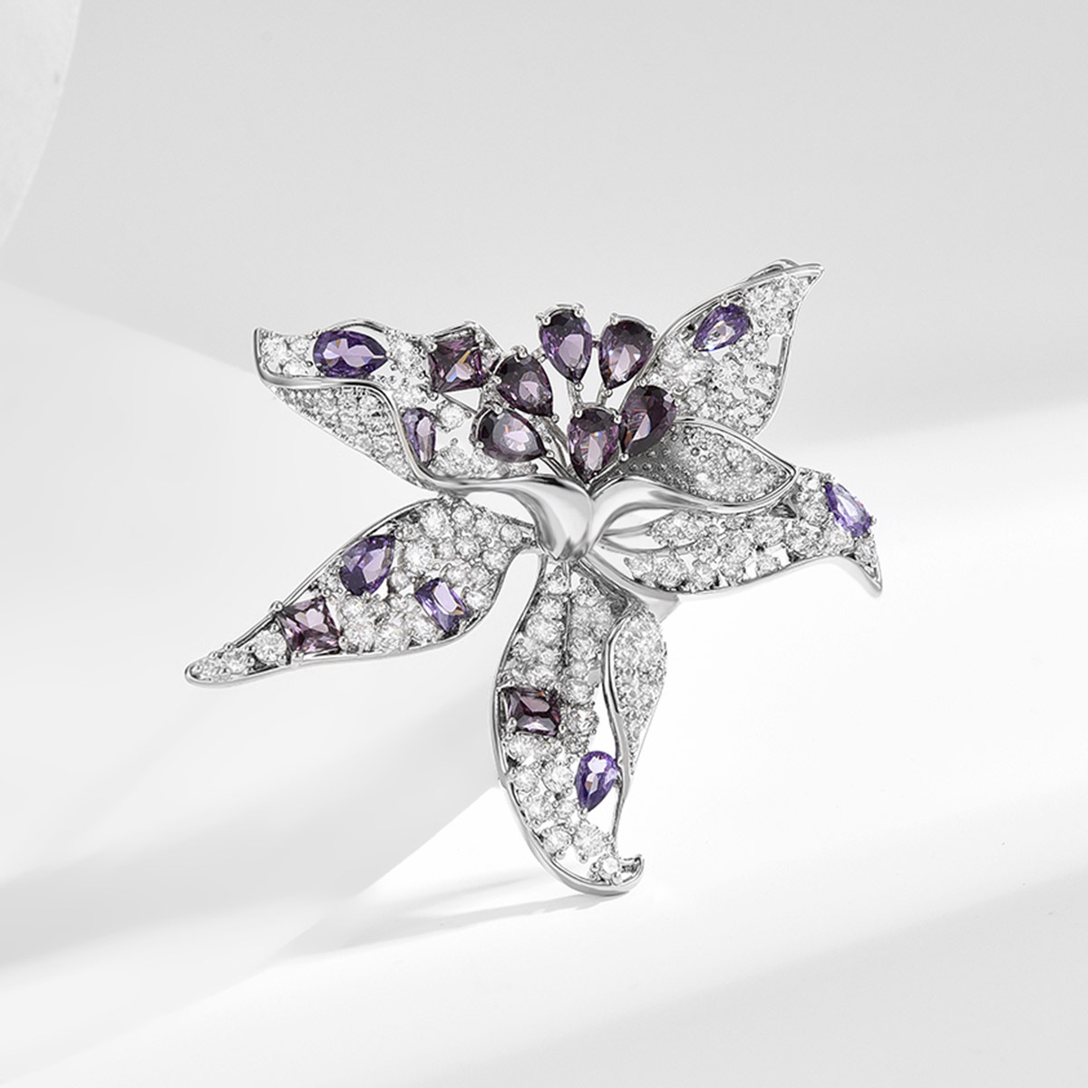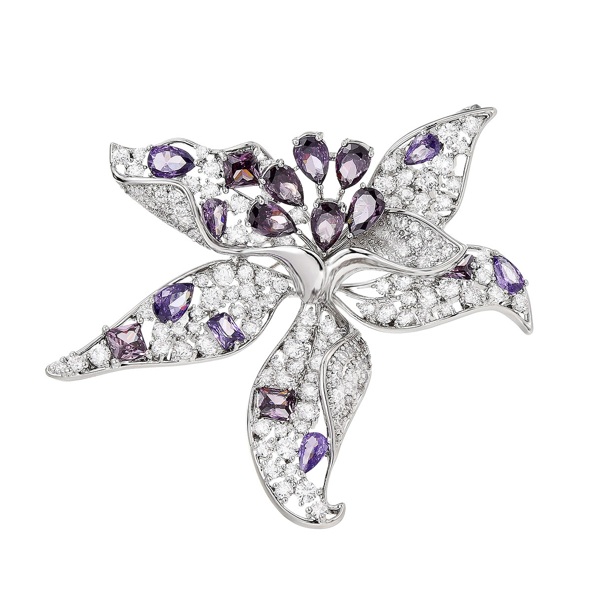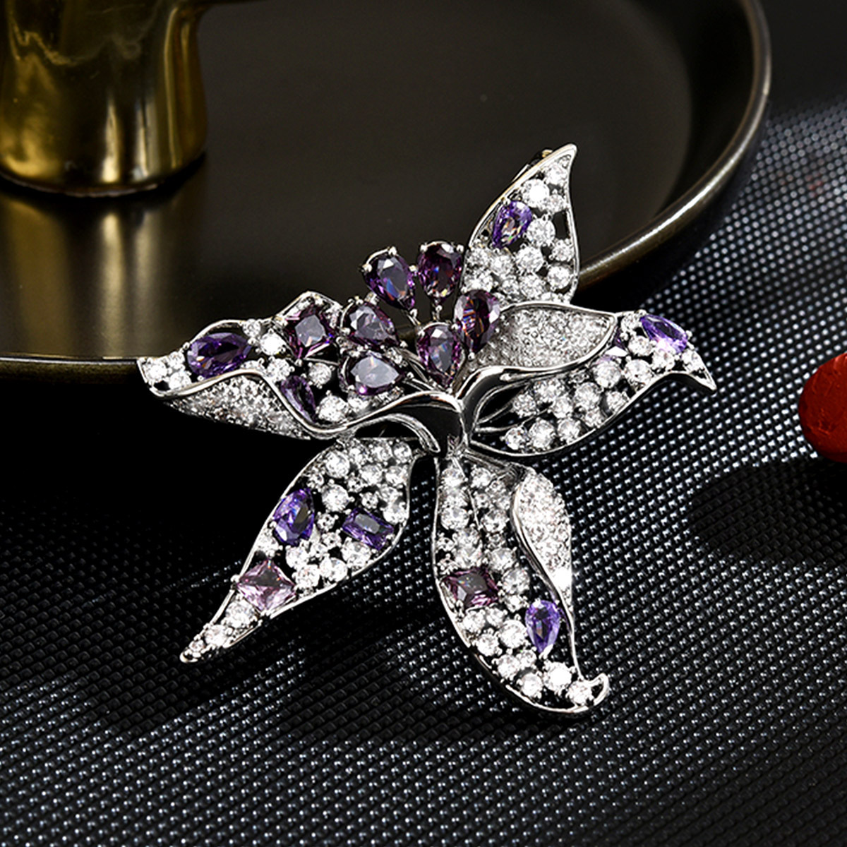 Broche de zircon cubique, laiton, fleur, Plaqué de platine, avec zircone cubique, plus de couleurs à choisir Vendu par PC