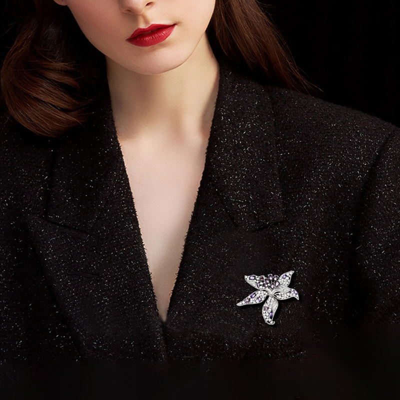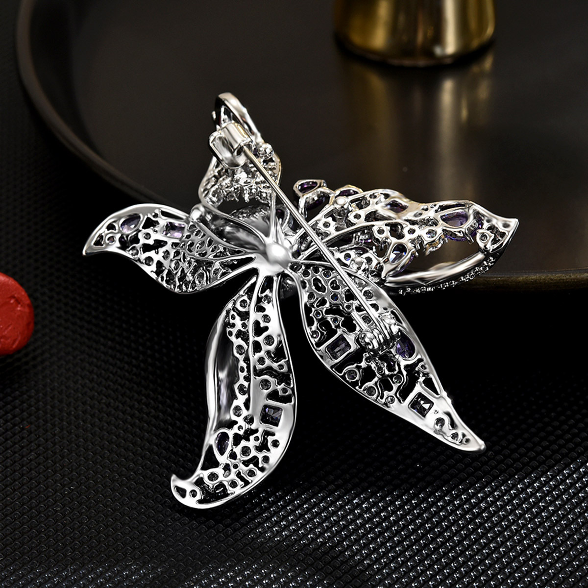 Broche de zircon cubique, laiton, pavé de micro zircon & pour femme, argent, 46x54mm, Vendu par PC