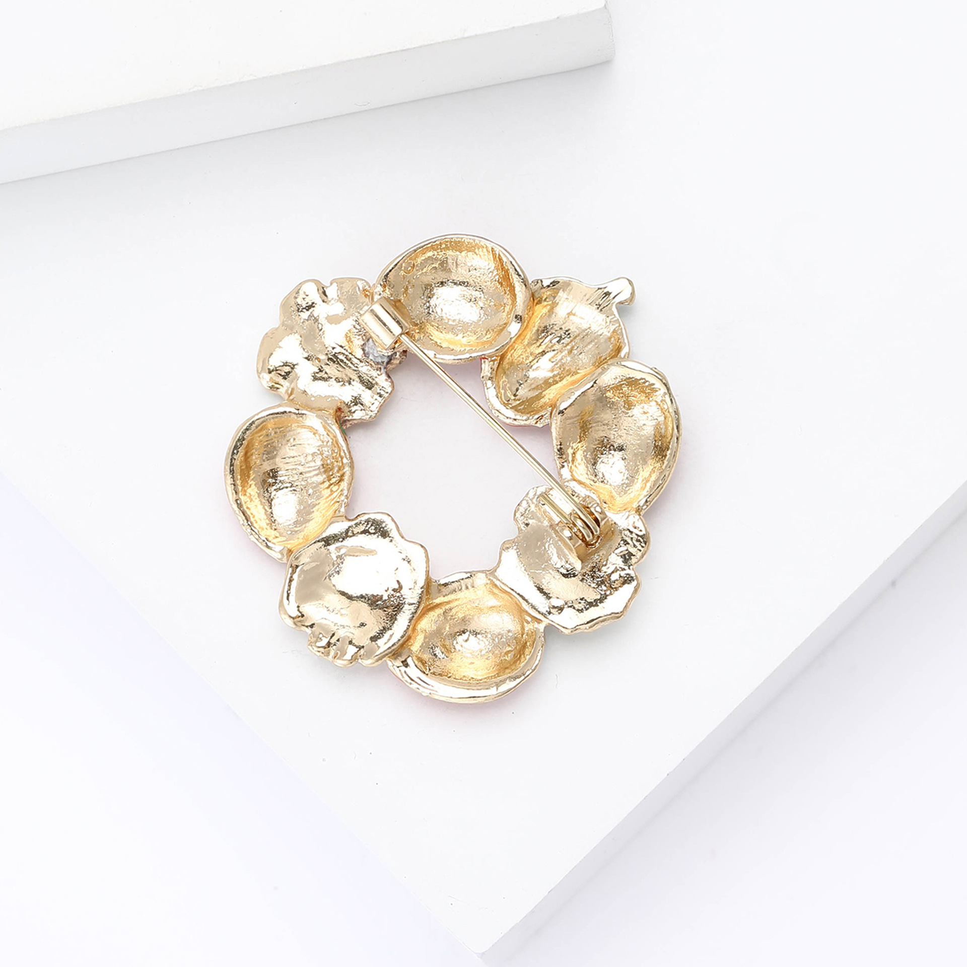 Broche émail, alliage de zinc, pomme, Placage de couleur d'or, avec strass, rouge, protéger l'environnement, sans nickel, plomb et cadmium Vendu par PC