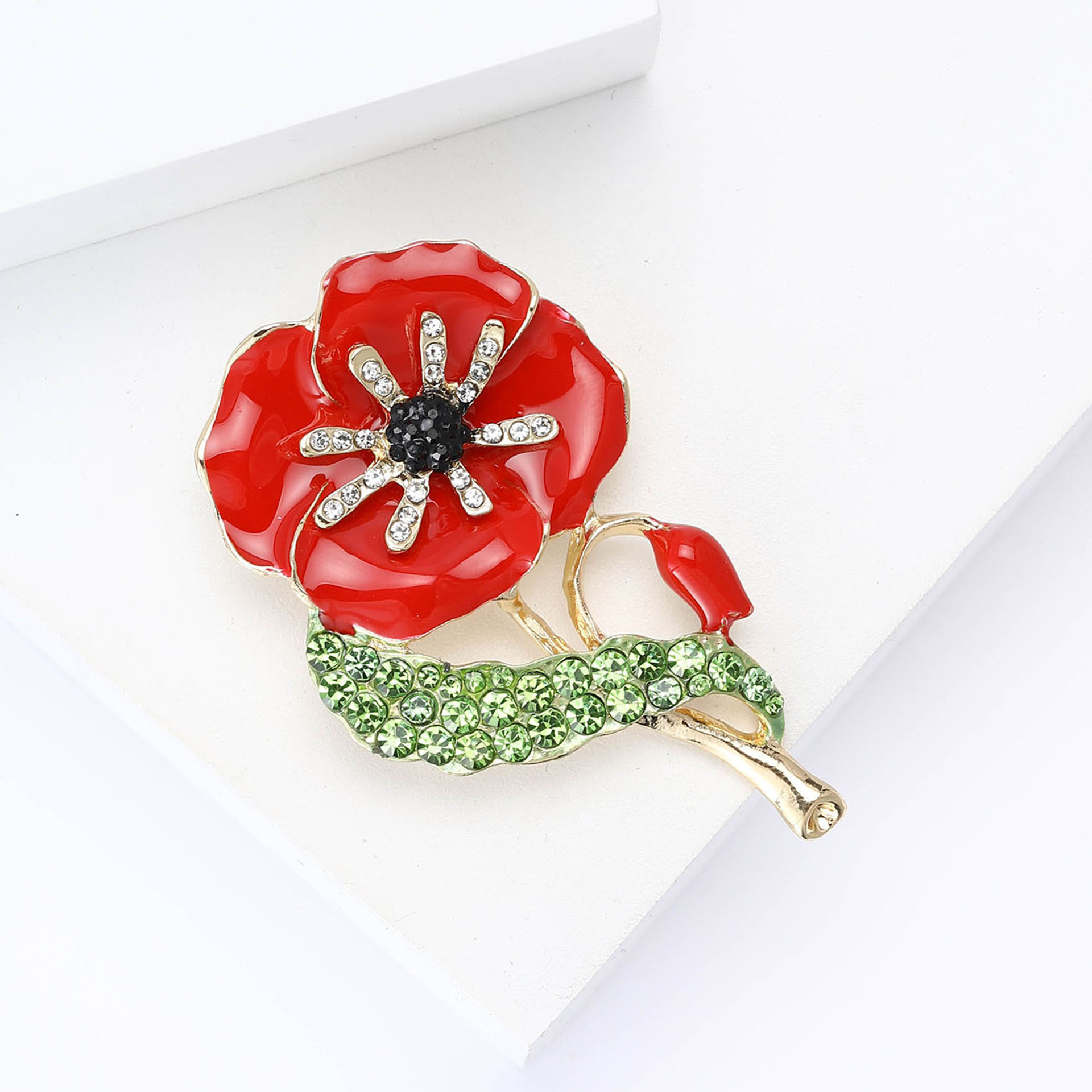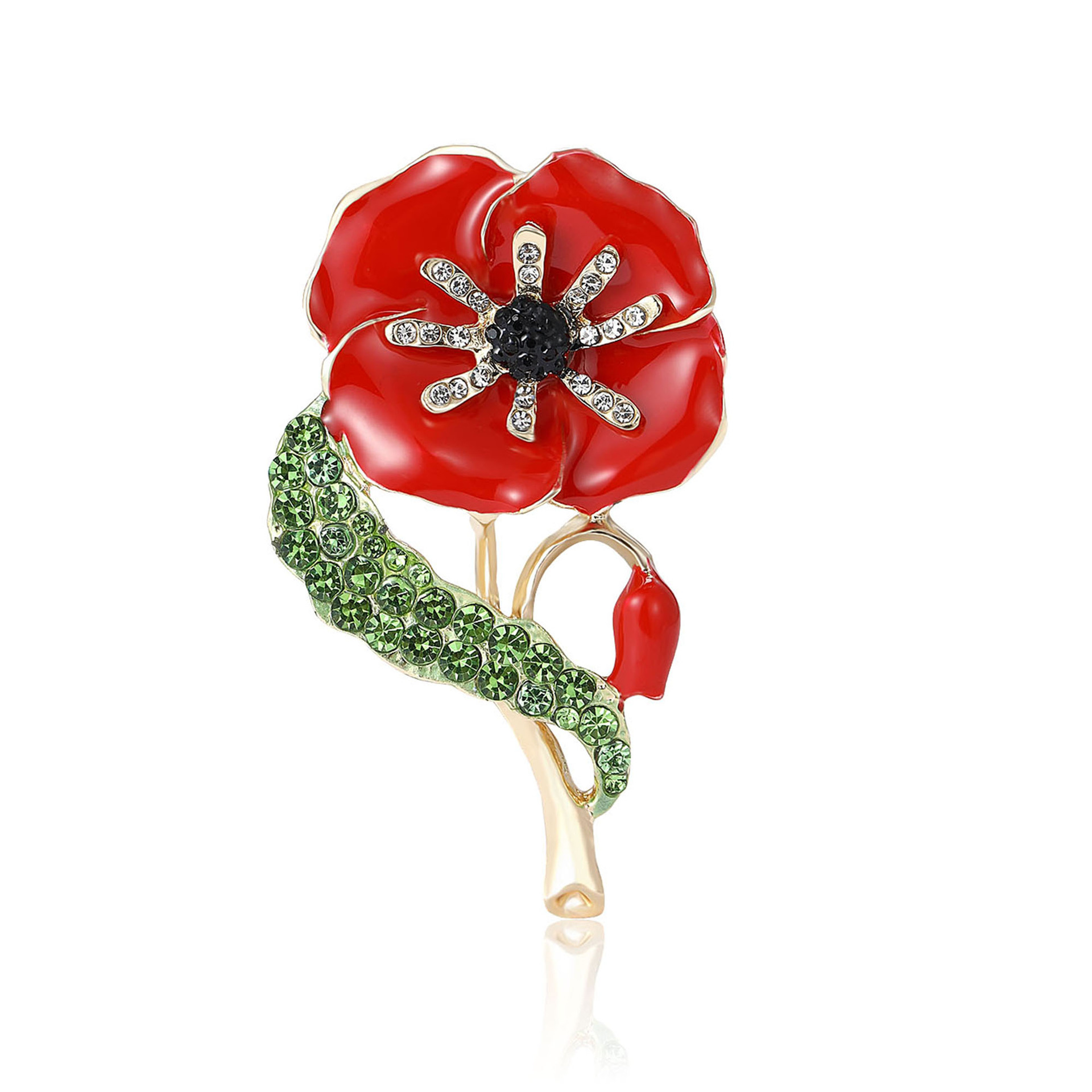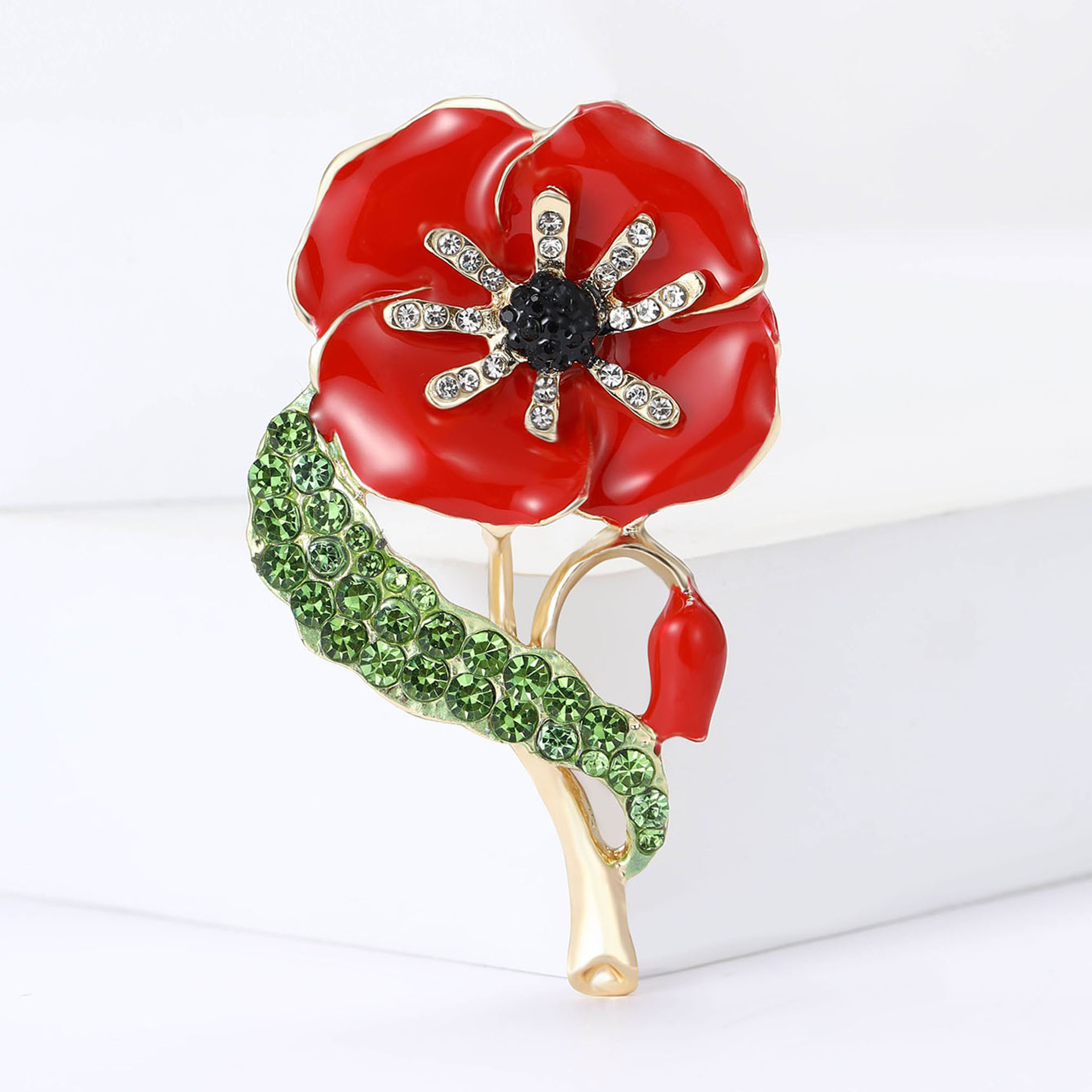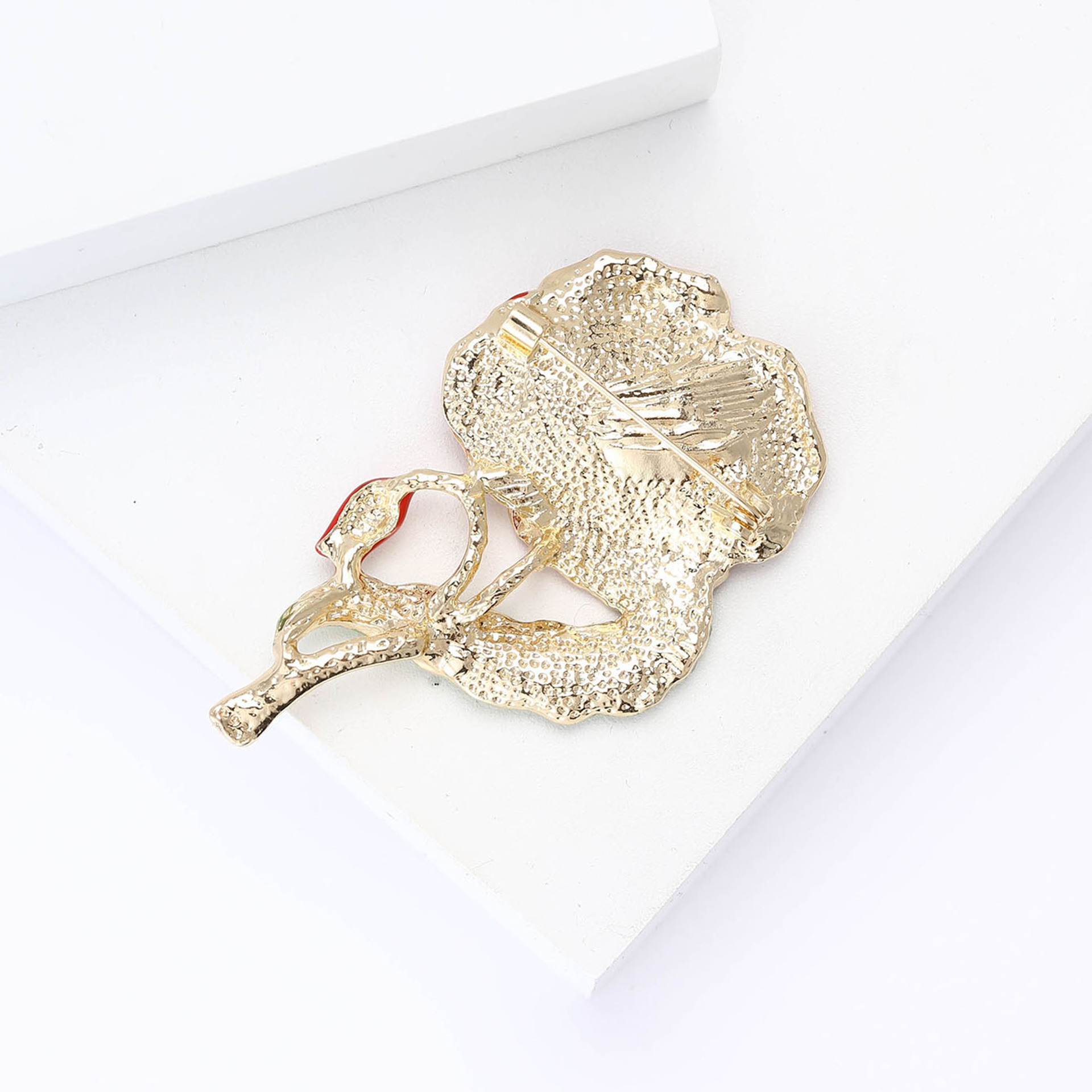 Broche émail, alliage de zinc, fleur, Placage de couleur d'or, pavé de micro zircon & pour femme, rouge, Vendu par PC