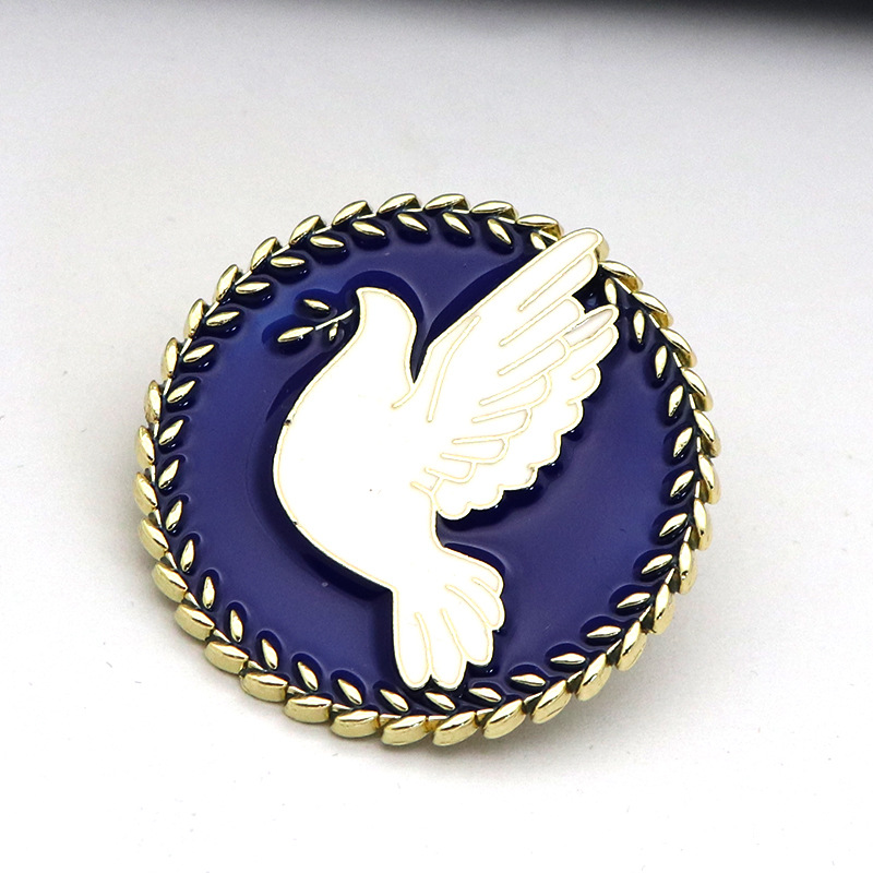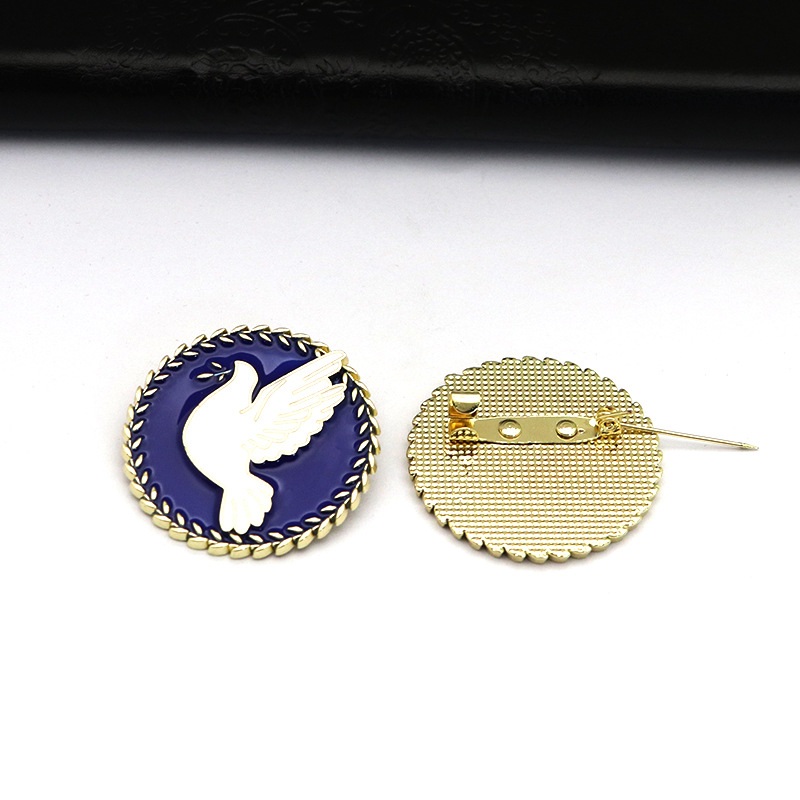 Broche émail, alliage de zinc, colombe, Placage de couleur d'or, 37x37mm, Environ 100PC/sac, Vendu par sac
