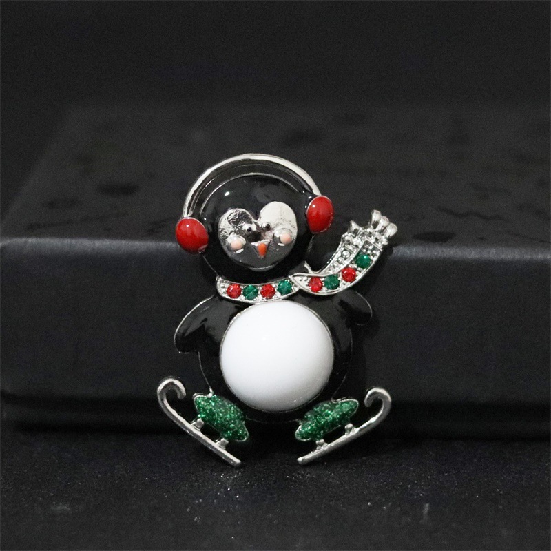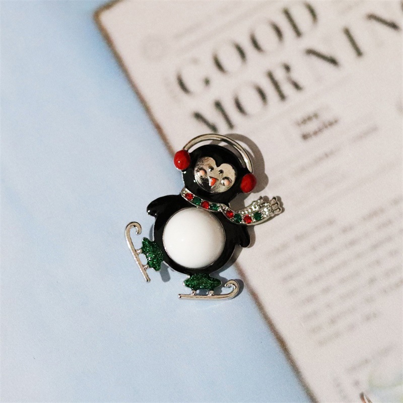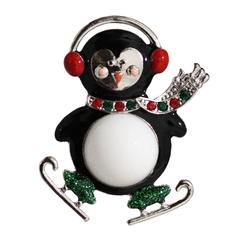 Broche émail, alliage de zinc, pingouin, Placage de couleur platine, pour femme & avec strass, sans plomb et cadmium Vendu par PC
