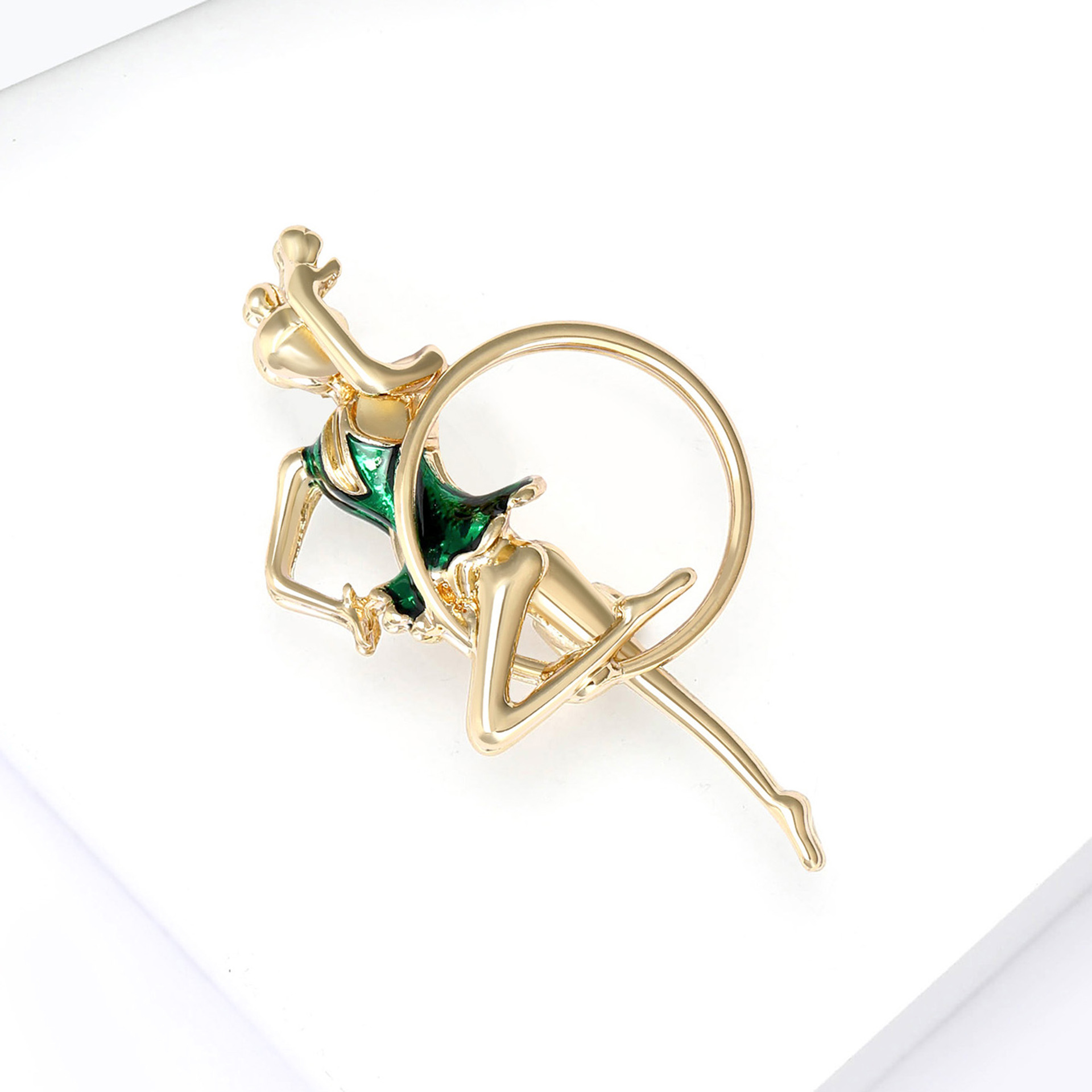 Broche émail, alliage de zinc, grenouille, Placage de couleur d'or, avec strass, vert Vendu par PC