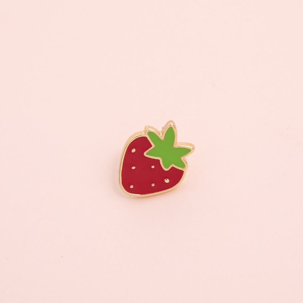Broche émail, alliage de zinc, pomme, Placage de couleur d'or, avec strass, rouge, protéger l'environnement, sans nickel, plomb et cadmium Vendu par PC