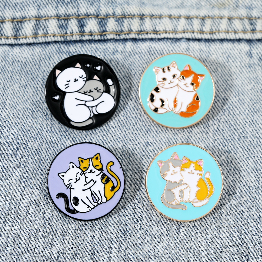 Broche émail, alliage de zinc, Rond, unisexe & modèles différents pour le choix, noire, Vendu par PC