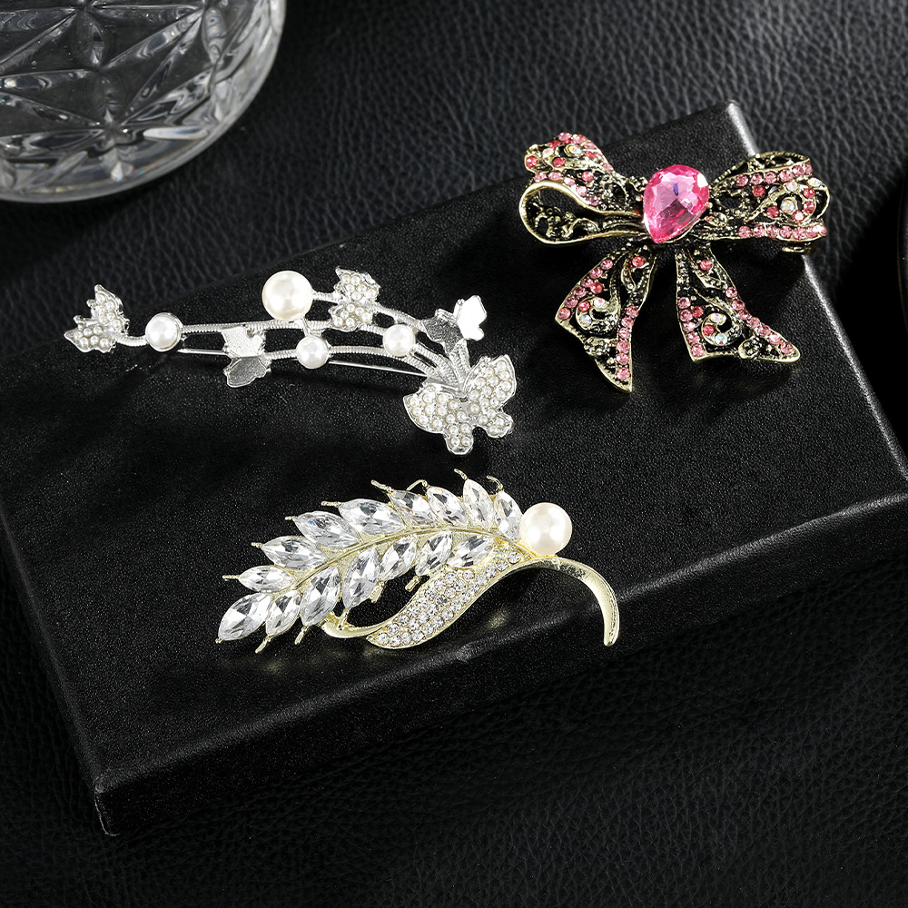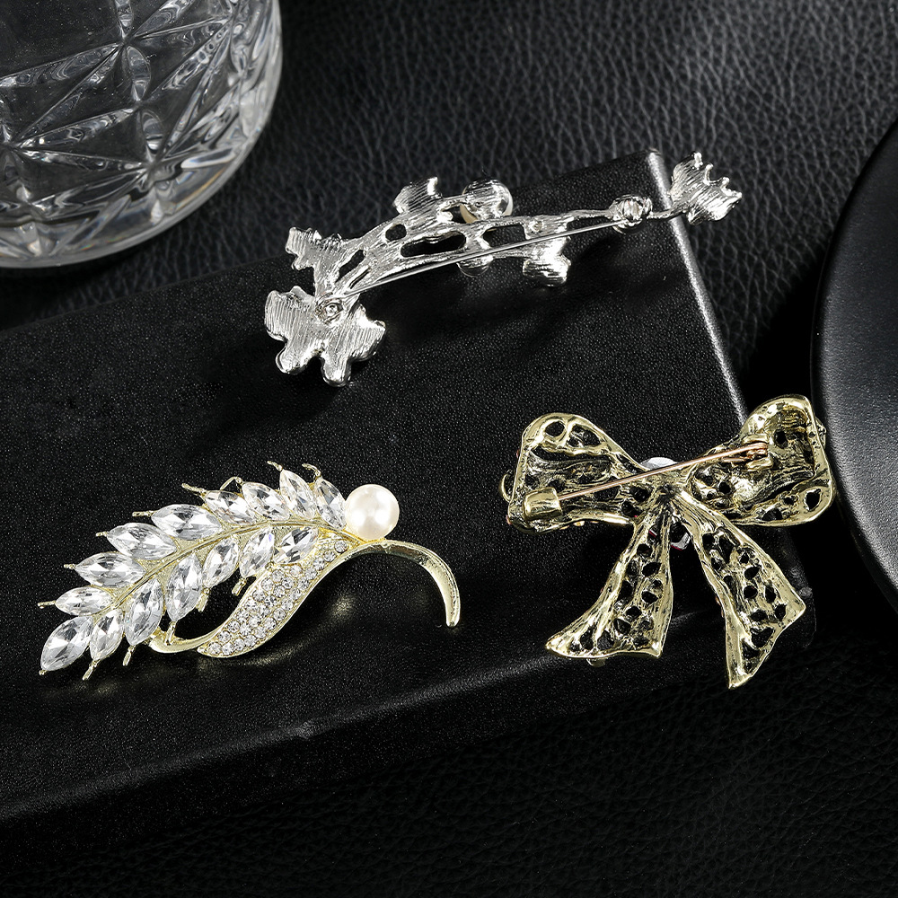 Broche en alliage zinc avec stras, strass, avec alliage de zinc, feuille, sans plomb et nickel, Vendu par PC