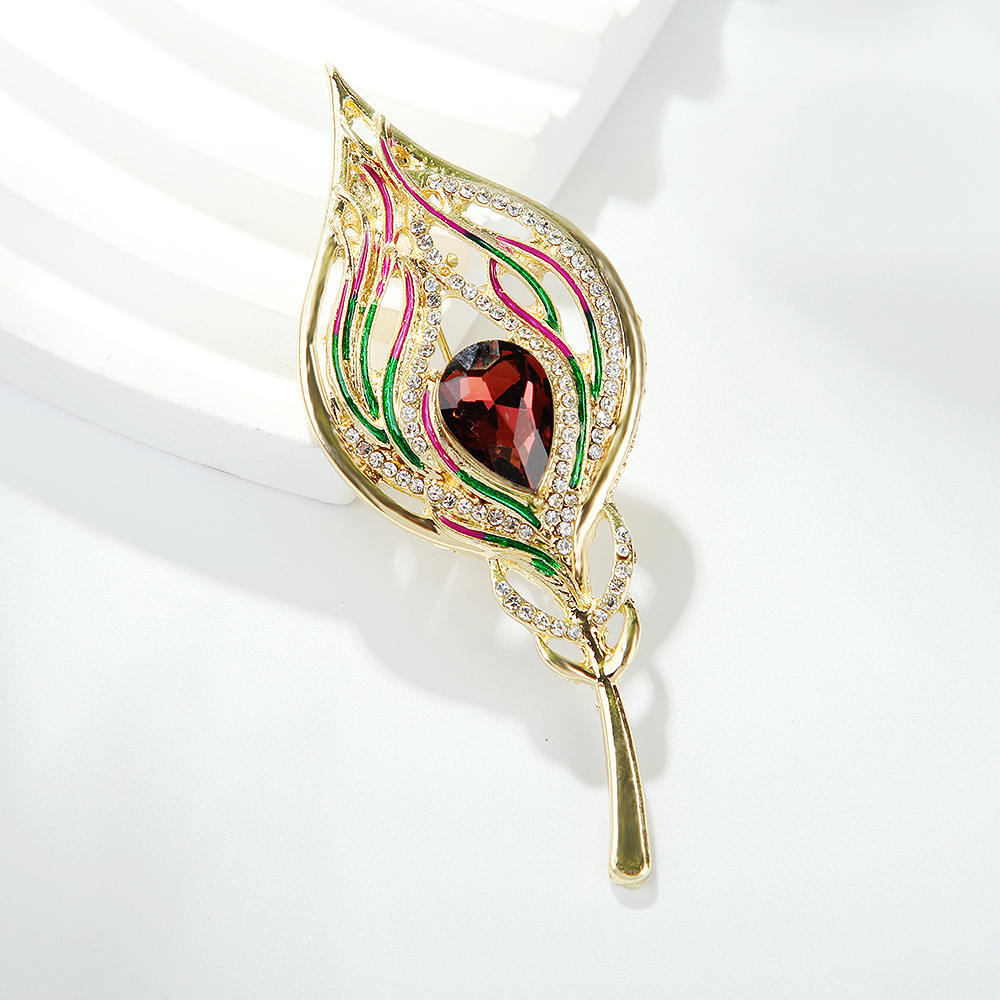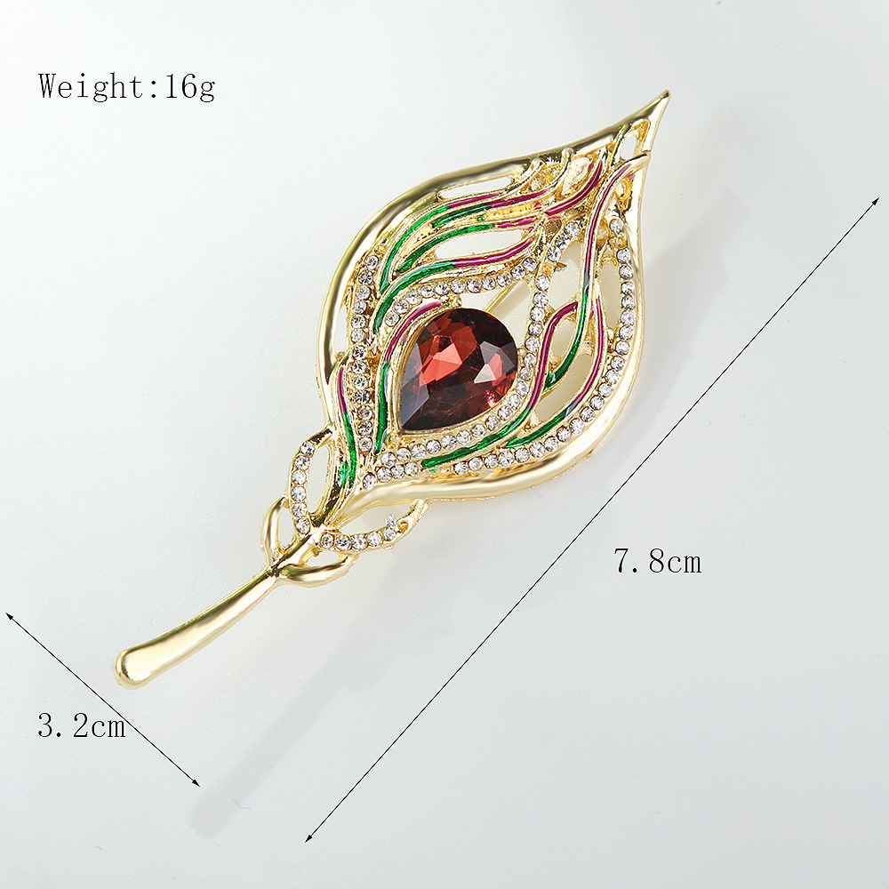 Broche en alliage zinc avec stras, alliage de zinc, forme de plume, Placage, pour femme & émail & avec strass & creux, plus de couleurs à choisir, Vendu par PC