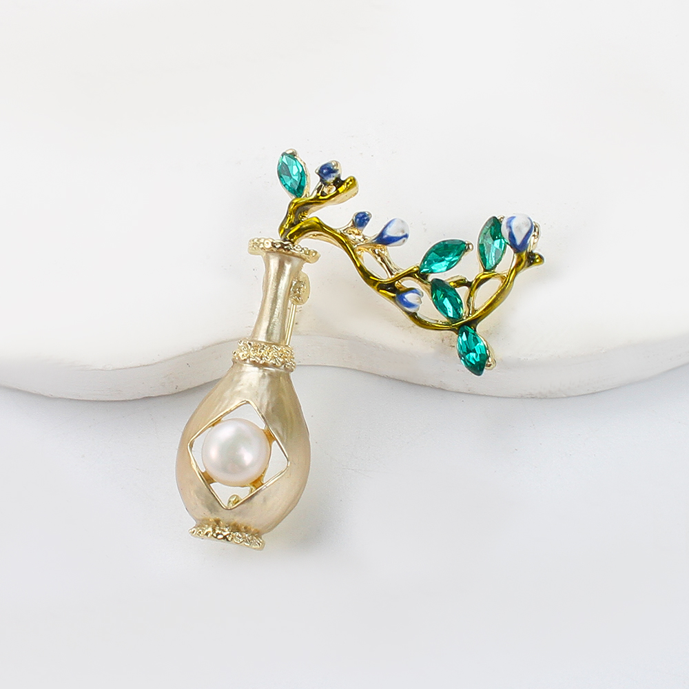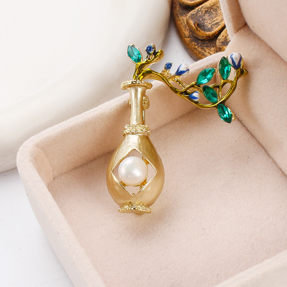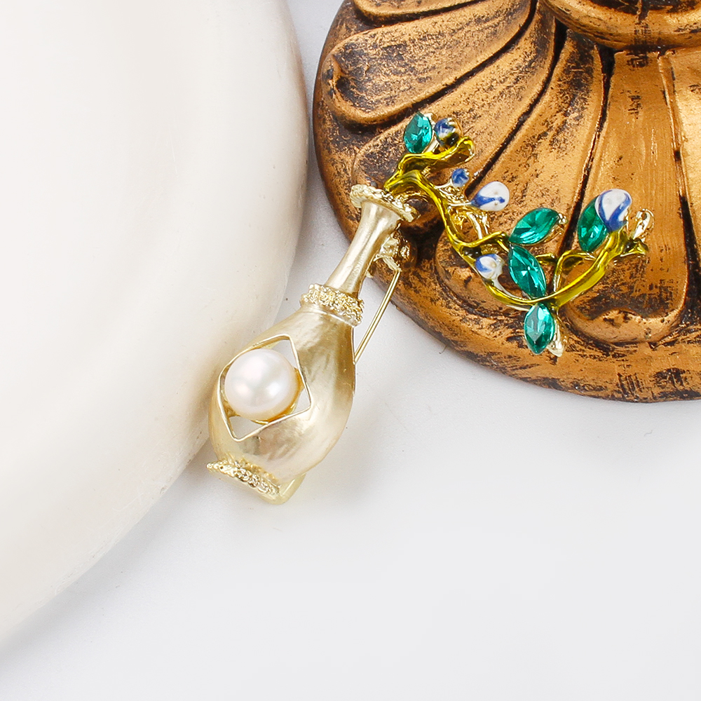 Broche perle d'eau douce, laiton, avec perle d'eau douce cultivée, Placage de couleur d'or, unisexe, vert Vendu par PC