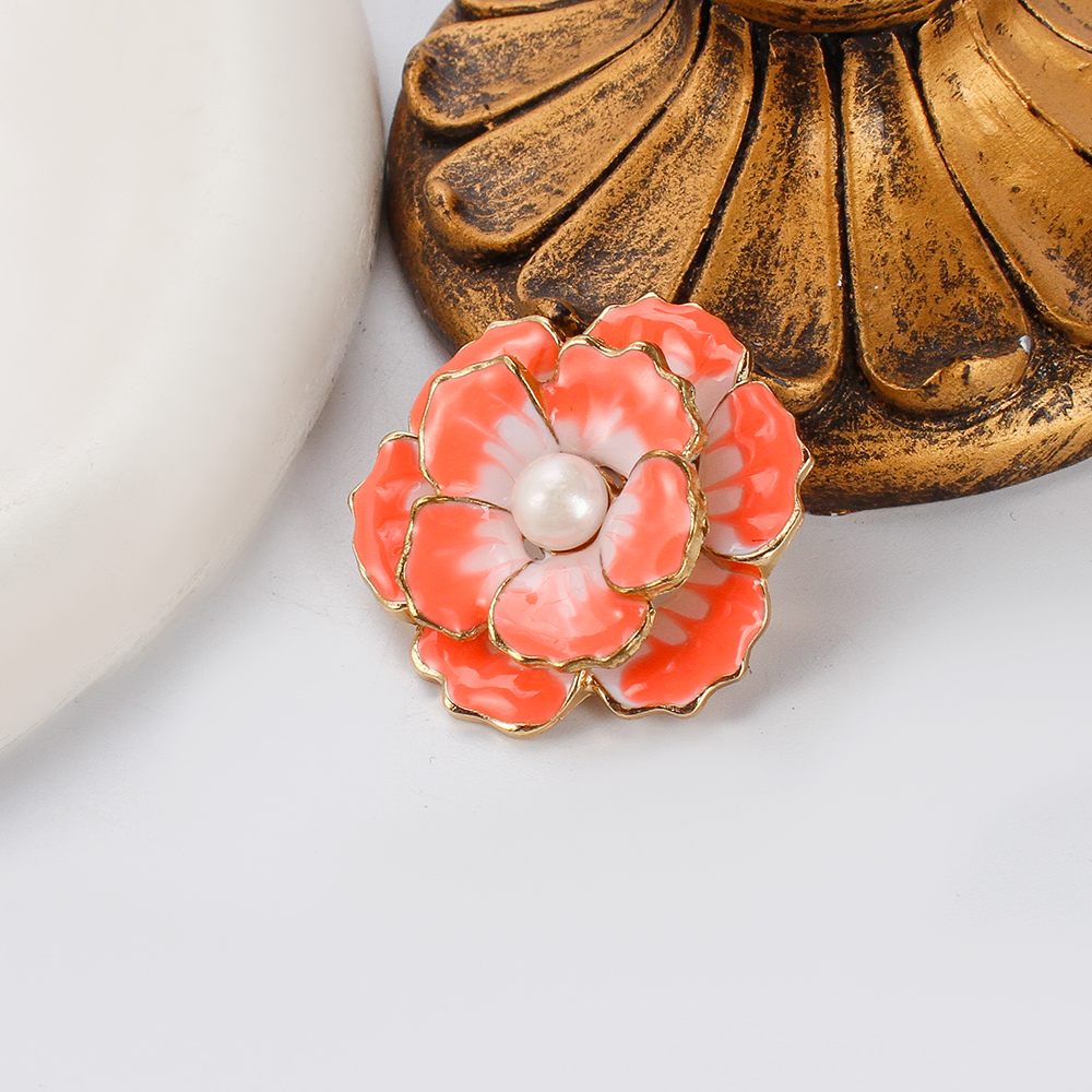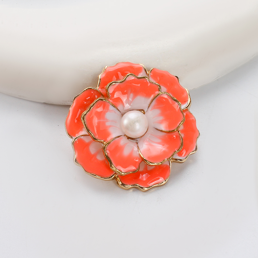 Broche perle d'eau douce, alliage de zinc, avec perle d'eau douce cultivée & résine, fleur, Placage de couleur d'or, bijoux de mode & émail, plus de couleurs à choisir Vendu par PC
