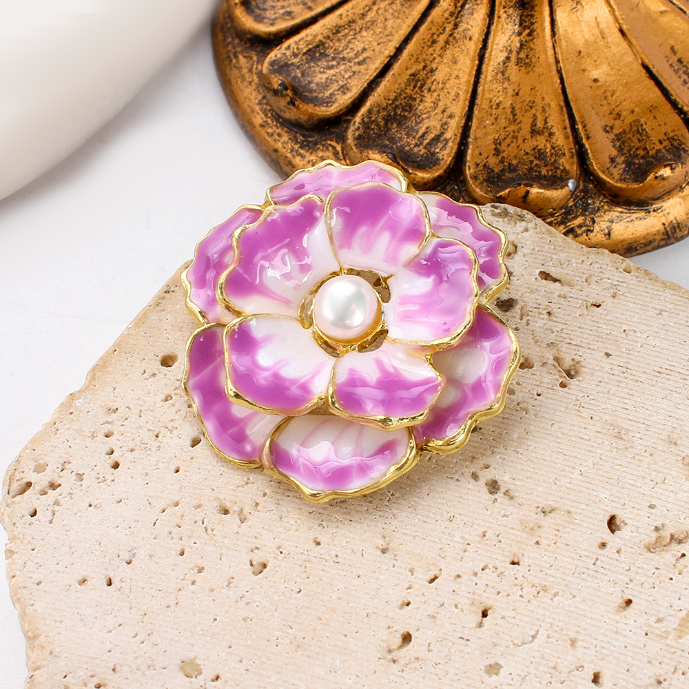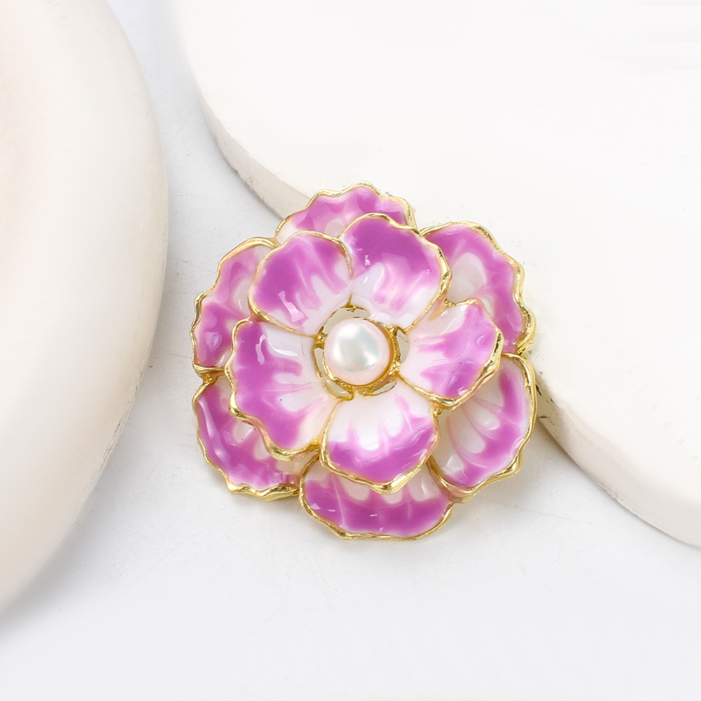 Broche perle d'eau douce, alliage de zinc, avec perle d'eau douce cultivée & résine, fleur, Placage de couleur d'or, bijoux de mode & émail, plus de couleurs à choisir Vendu par PC