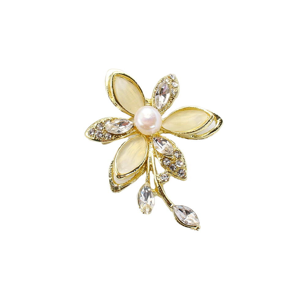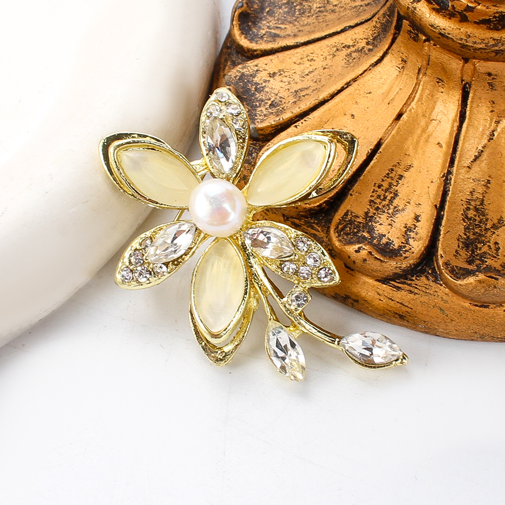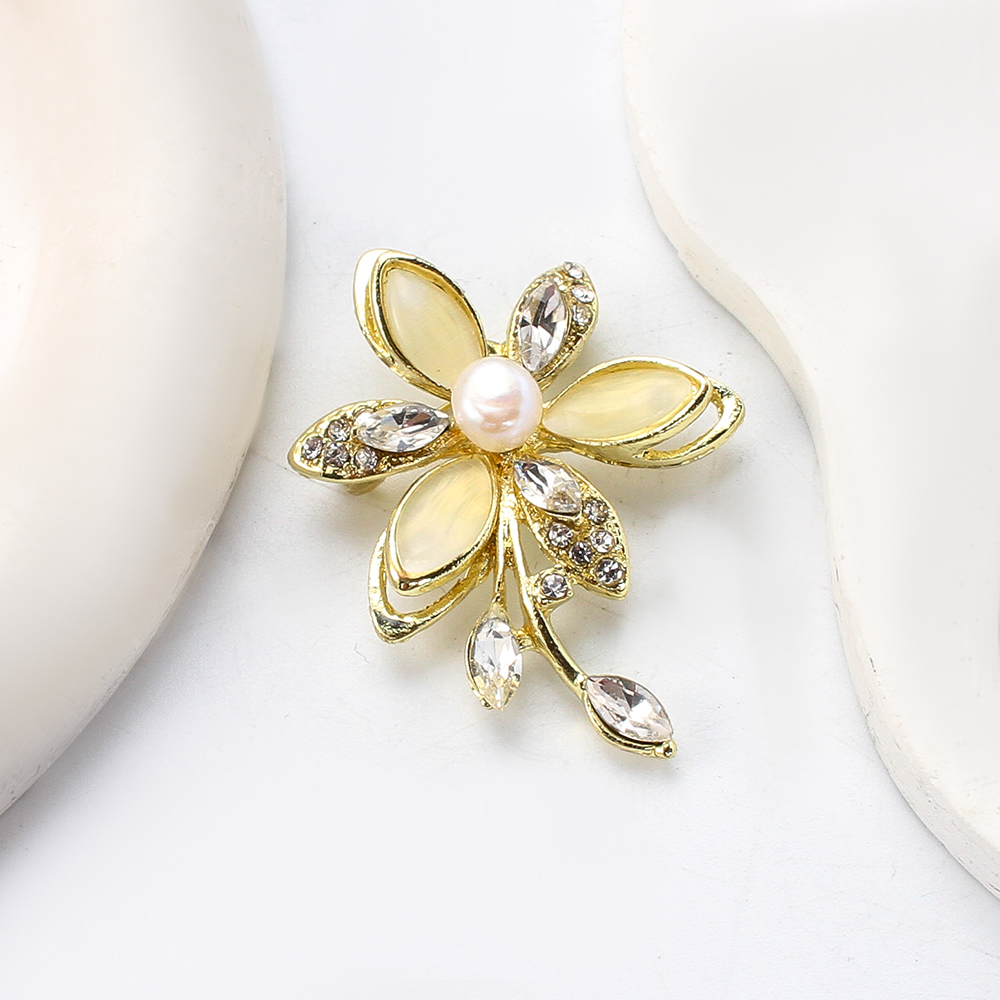 Broche perle d'eau douce, alliage de zinc, avec perle d'eau douce cultivée & résine, Placage de couleur d'or, bijoux de mode & avec strass, plus de couleurs à choisir Vendu par PC