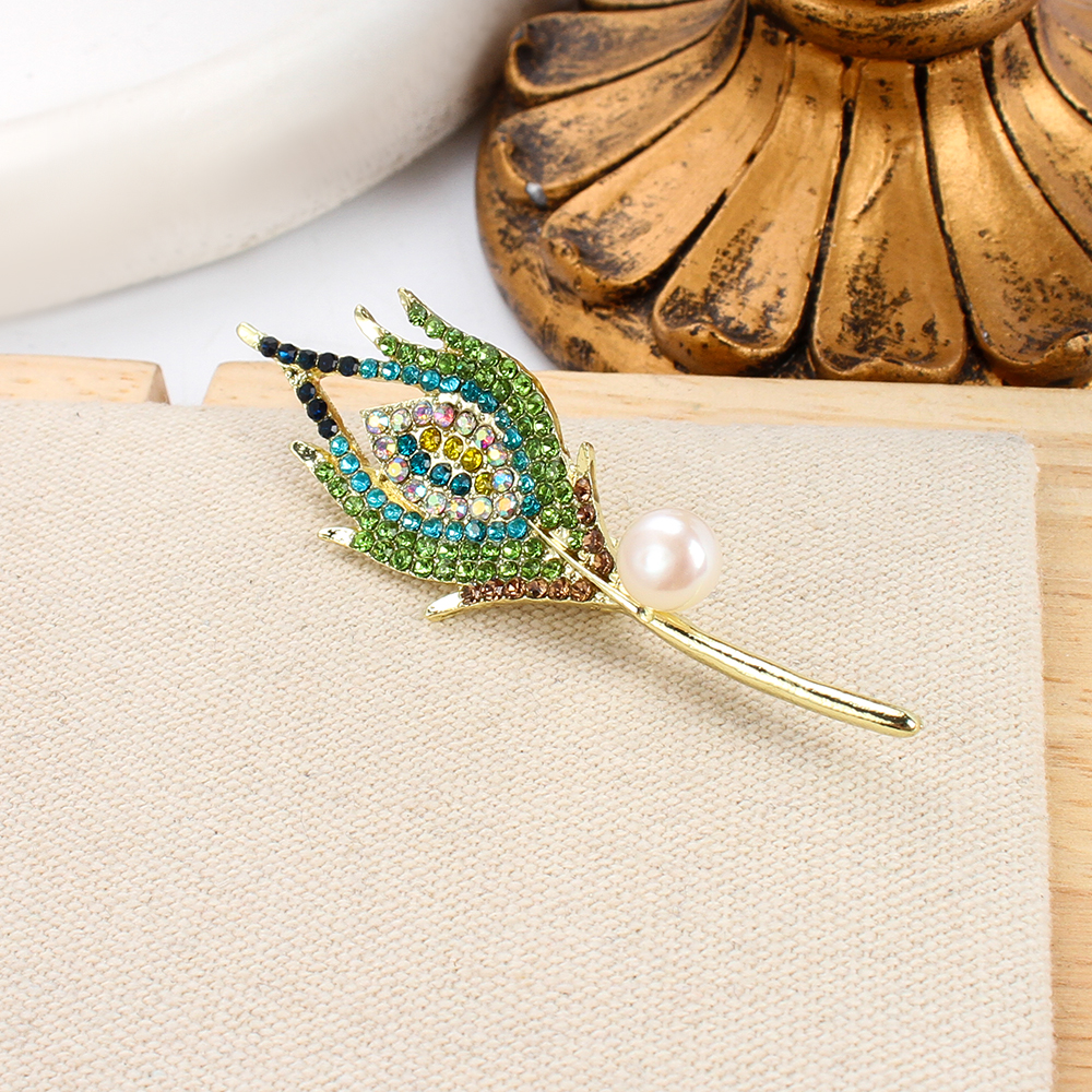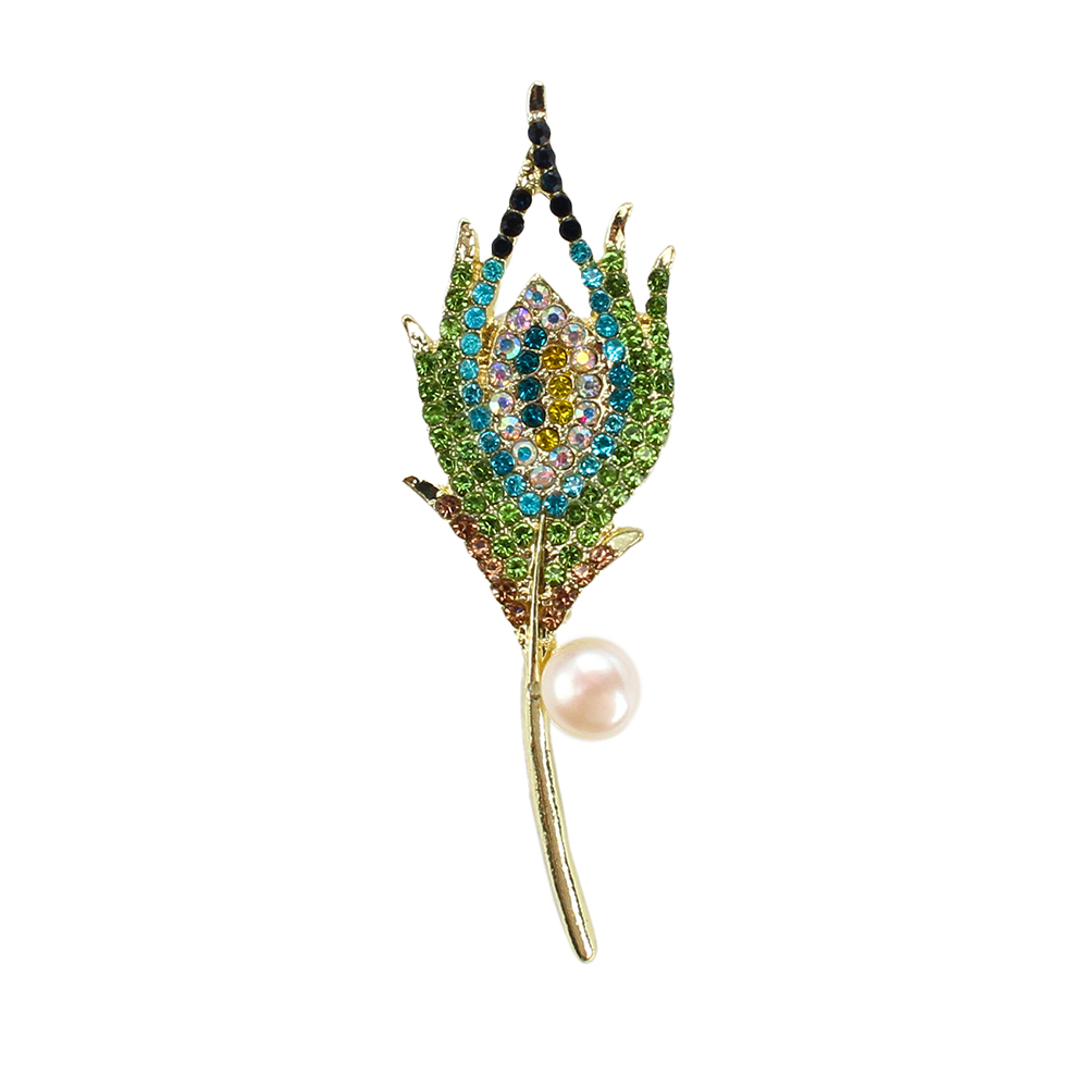 Broche perle d'eau douce, laiton, avec perle d'eau douce cultivée, Placage de couleur d'or, unisexe, vert Vendu par PC