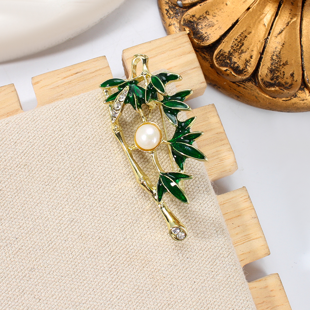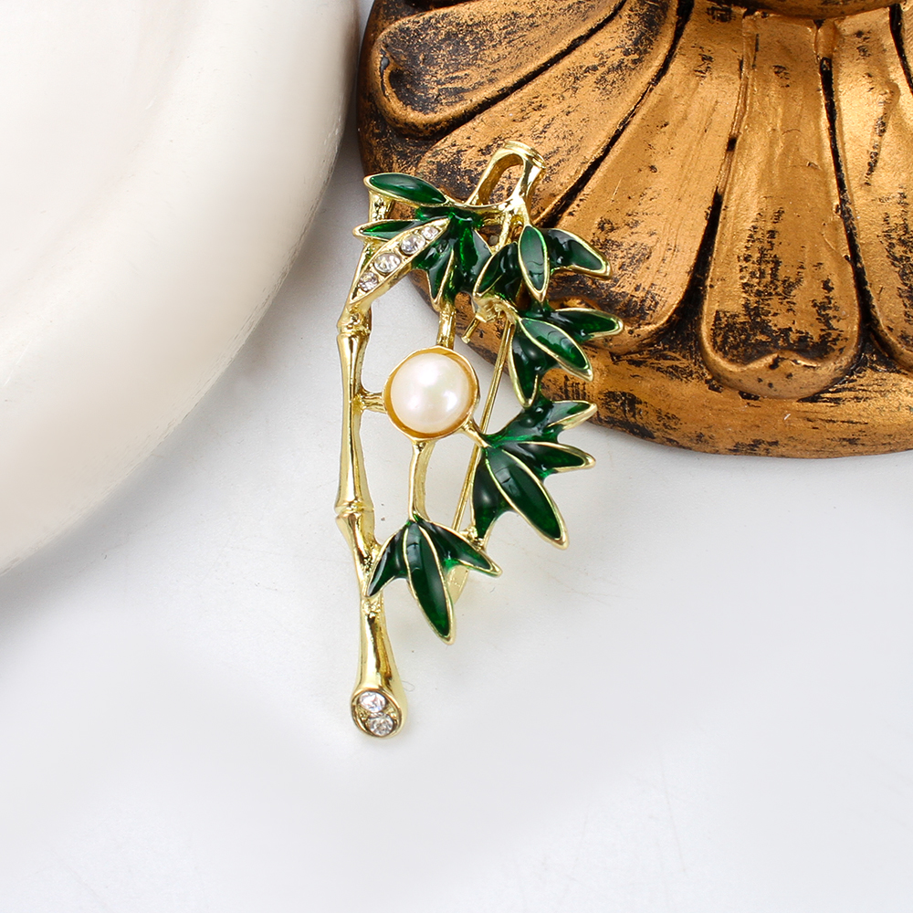 Broche perle d'eau douce, laiton, avec perle d'eau douce cultivée, Placage de couleur d'or, unisexe, vert Vendu par PC