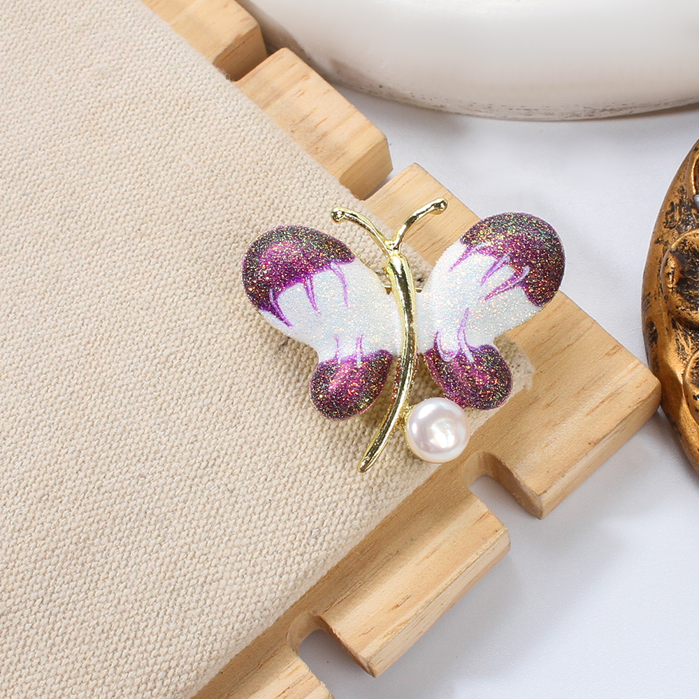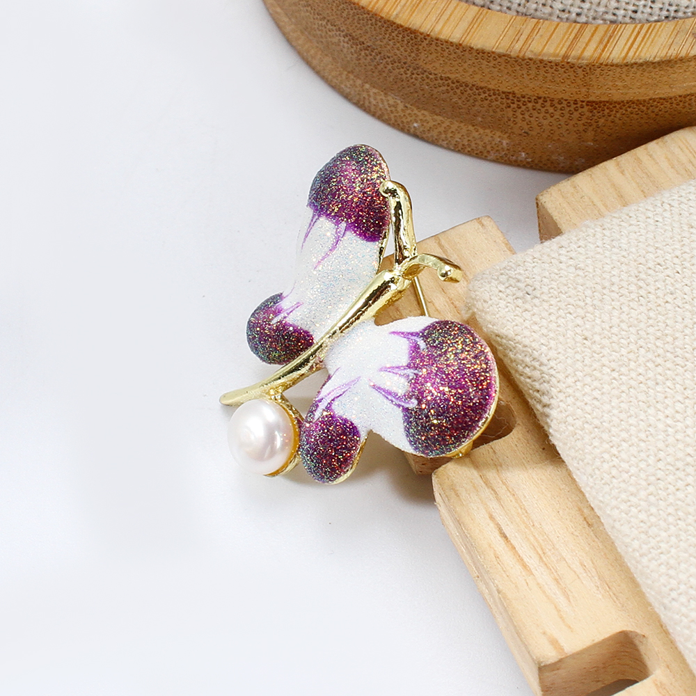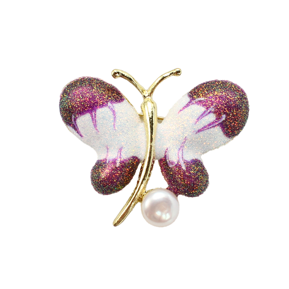 Broche perle d'eau douce, alliage de zinc, avec perle d'eau douce cultivée, papillon, Placage de couleur d'or, bijoux de mode & émail, plus de couleurs à choisir, 37.33x10.09x31.63mm, Vendu par PC