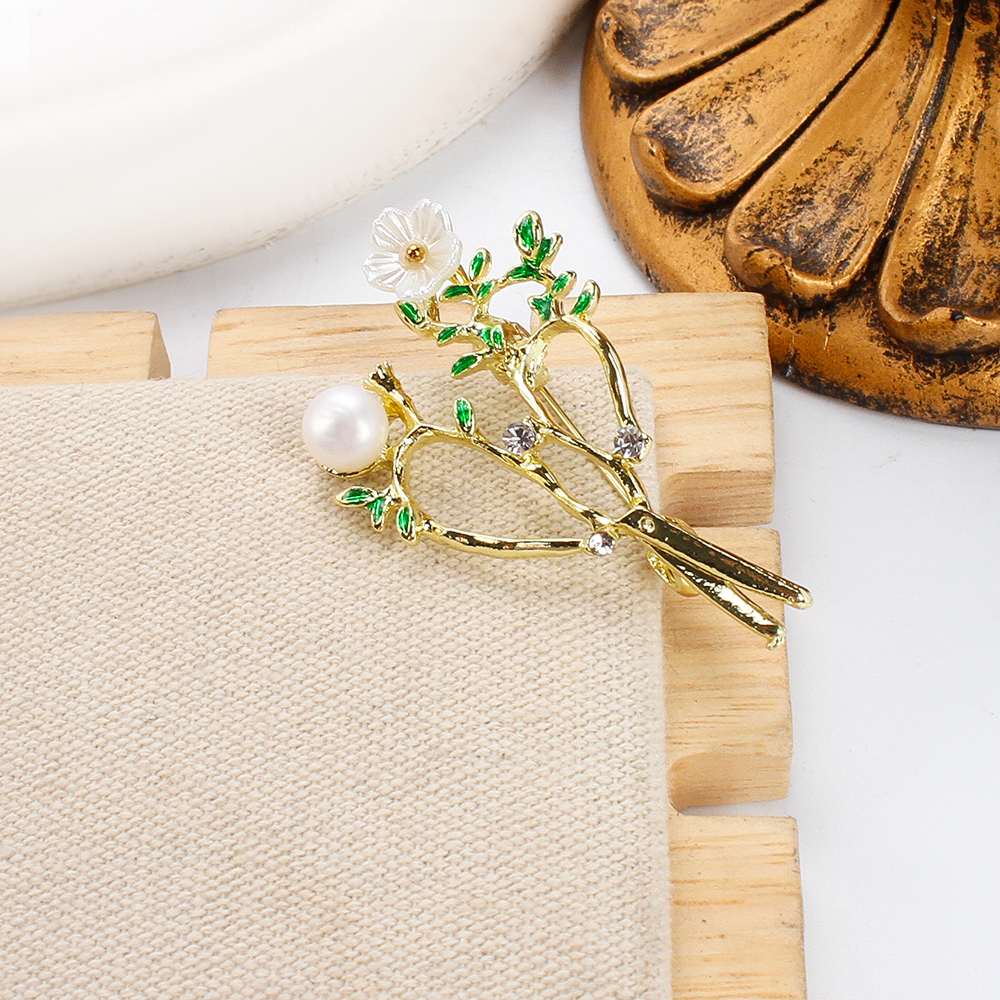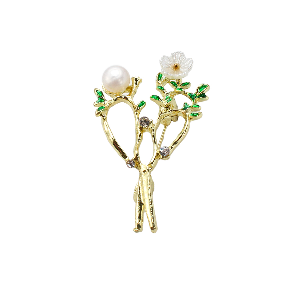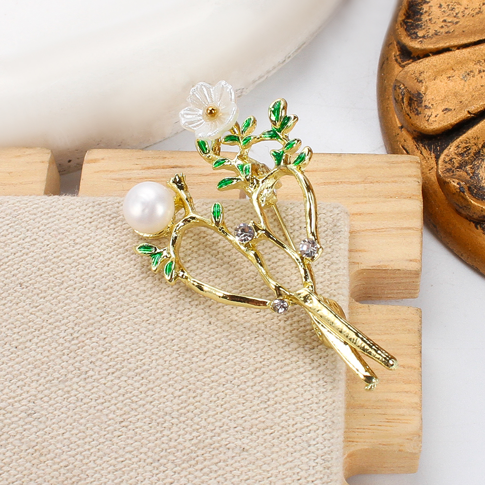 Broche perle d'eau douce, laiton, avec perle d'eau douce cultivée, Placage de couleur d'or, unisexe, vert Vendu par PC