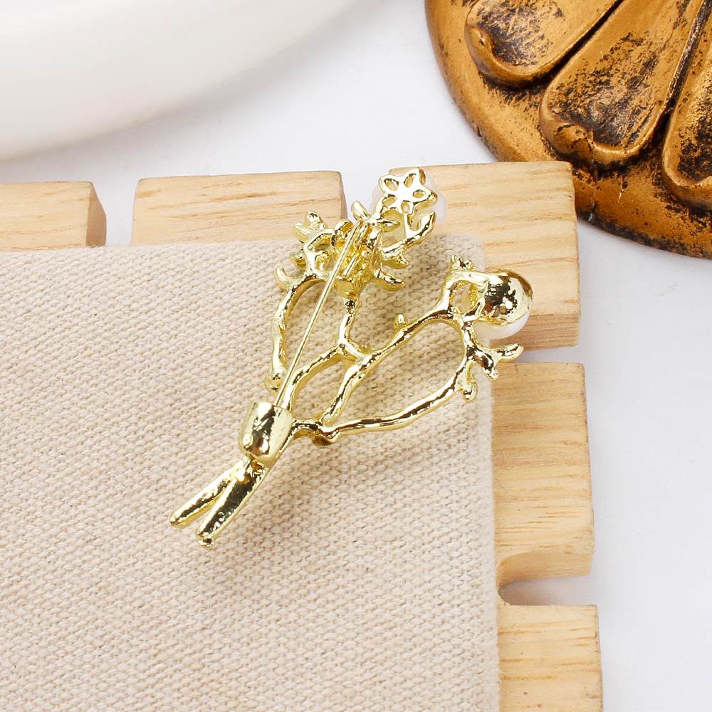 Broche perle d'eau douce, alliage de zinc, avec perle d'eau douce cultivée & Acrylique, Fleur de prunier, Placage de couleur d'or, bijoux de mode & avec strass, plus de couleurs à choisir Vendu par PC