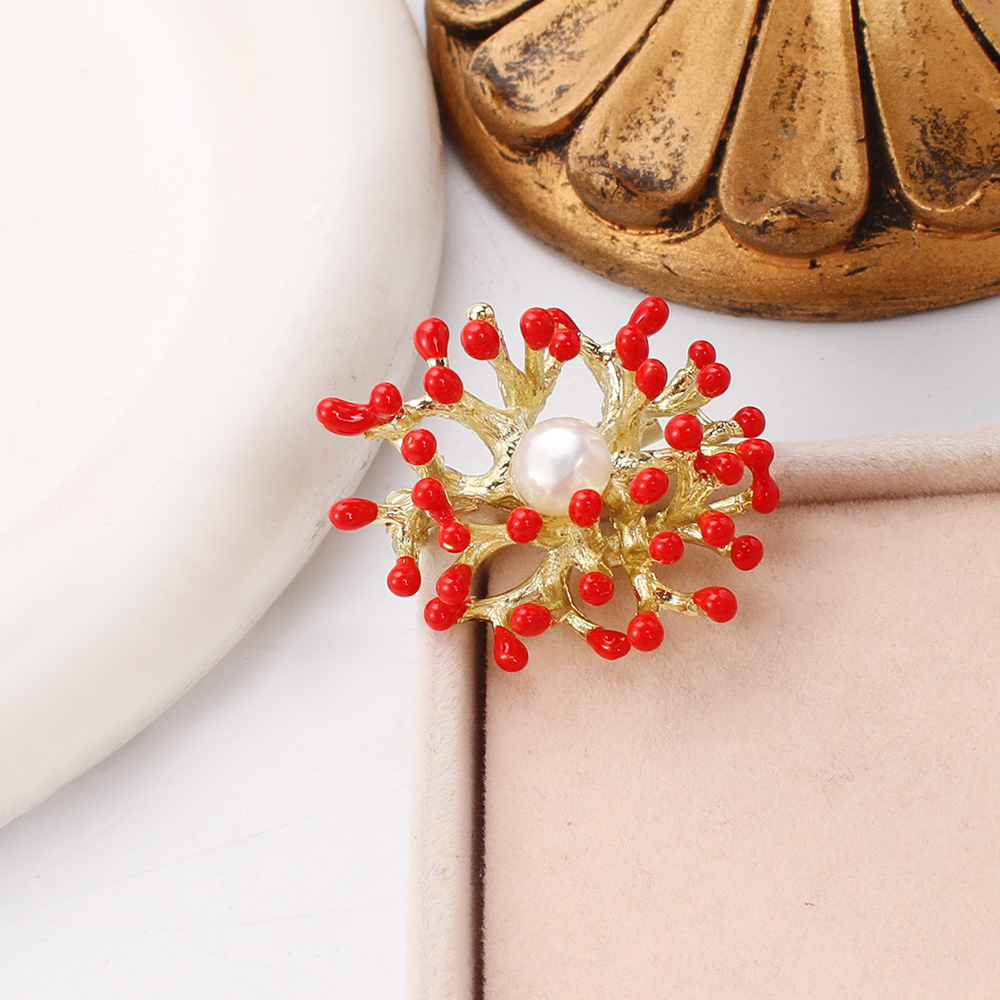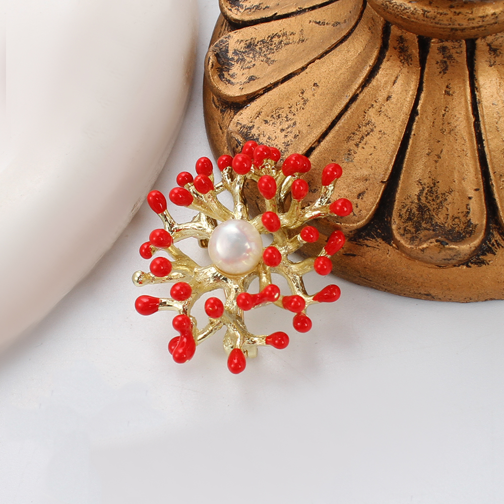 Broche perle d'eau douce, alliage de zinc, avec perle d'eau douce cultivée & résine, fleur, Placage de couleur d'or, bijoux de mode & émail, plus de couleurs à choisir Vendu par PC