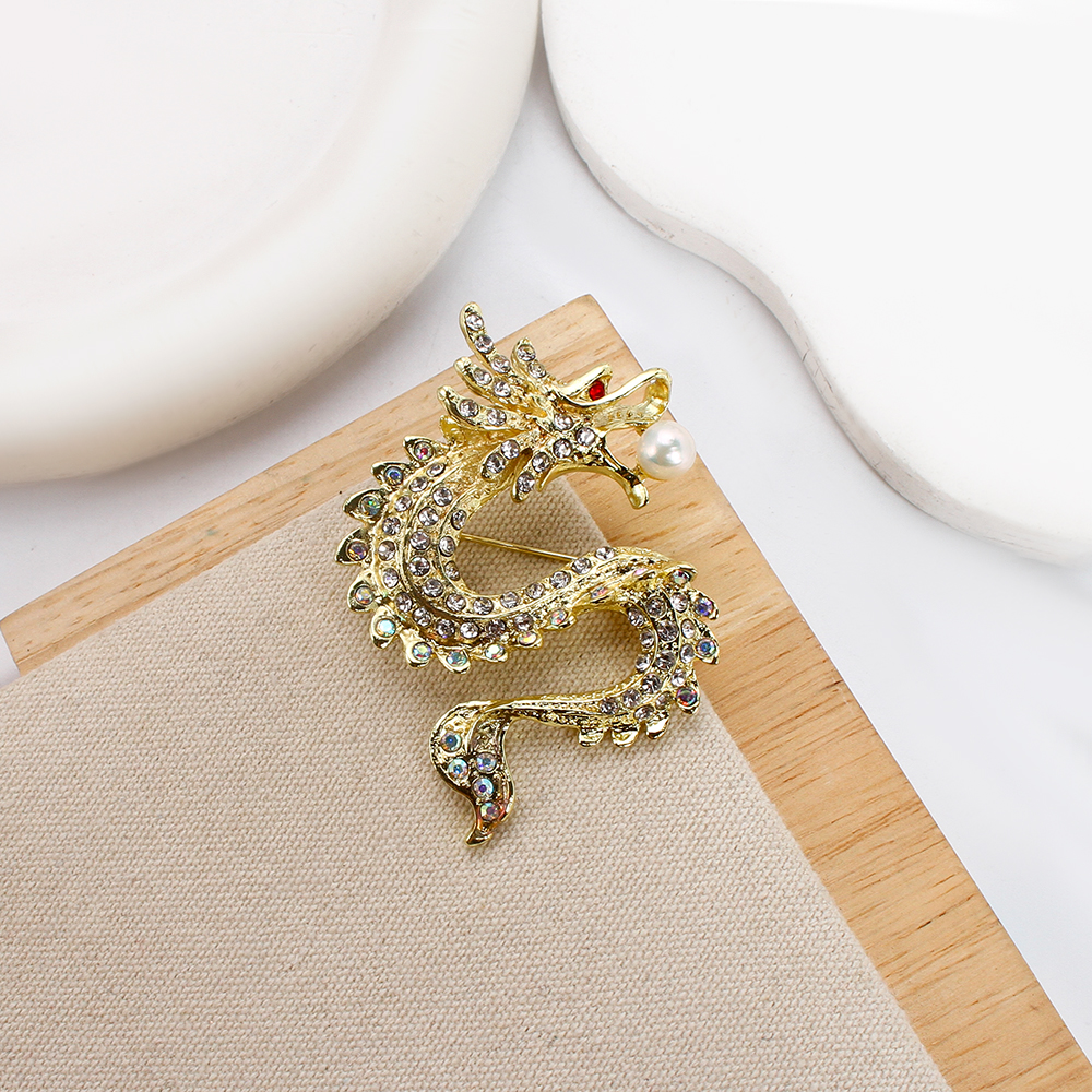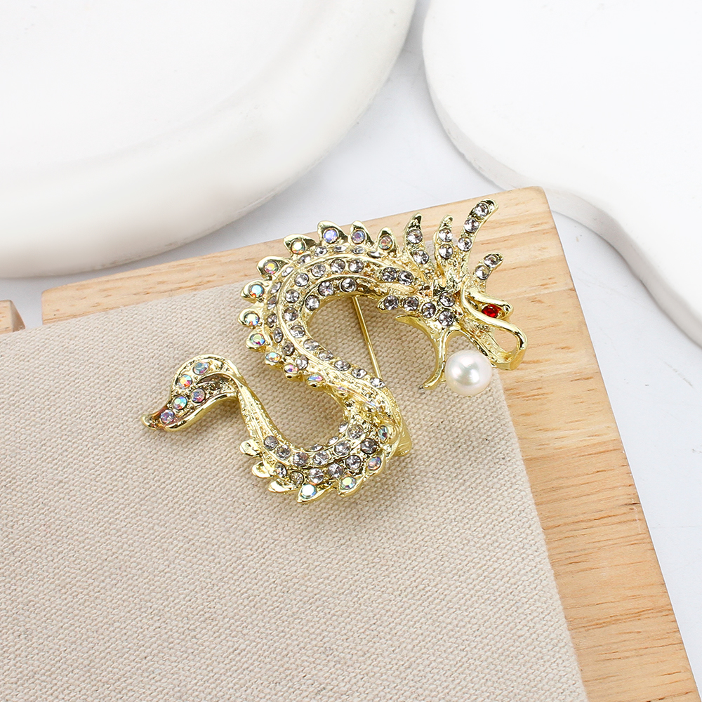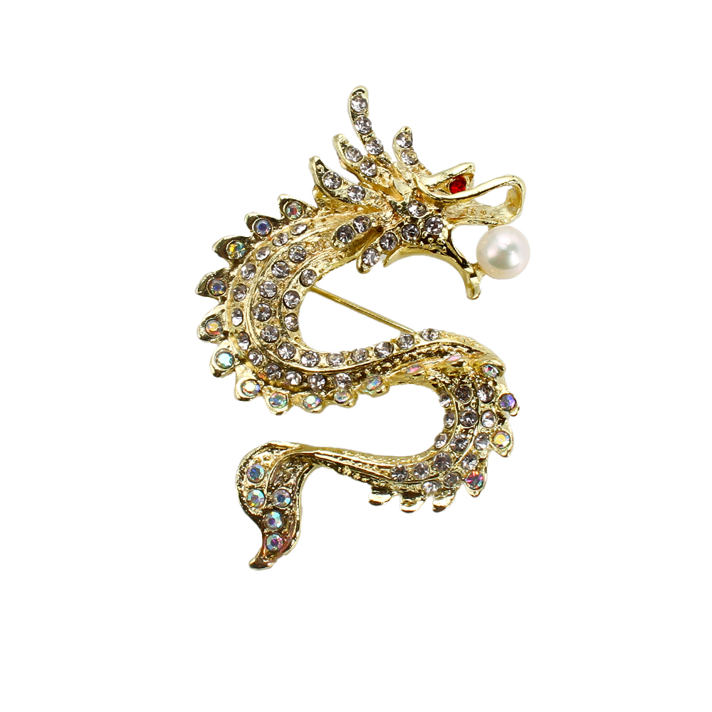 Broche perle d'eau douce, alliage de zinc, avec perle d'eau douce cultivée, dragon, Placage de couleur d'or, bijoux de mode & avec strass, plus de couleurs à choisir, 44.55x9.77x59.39mm, Vendu par PC