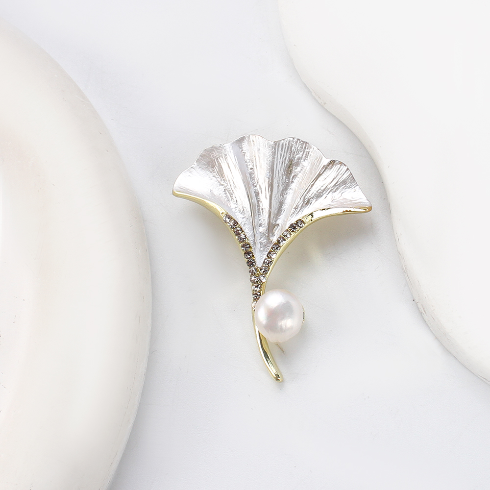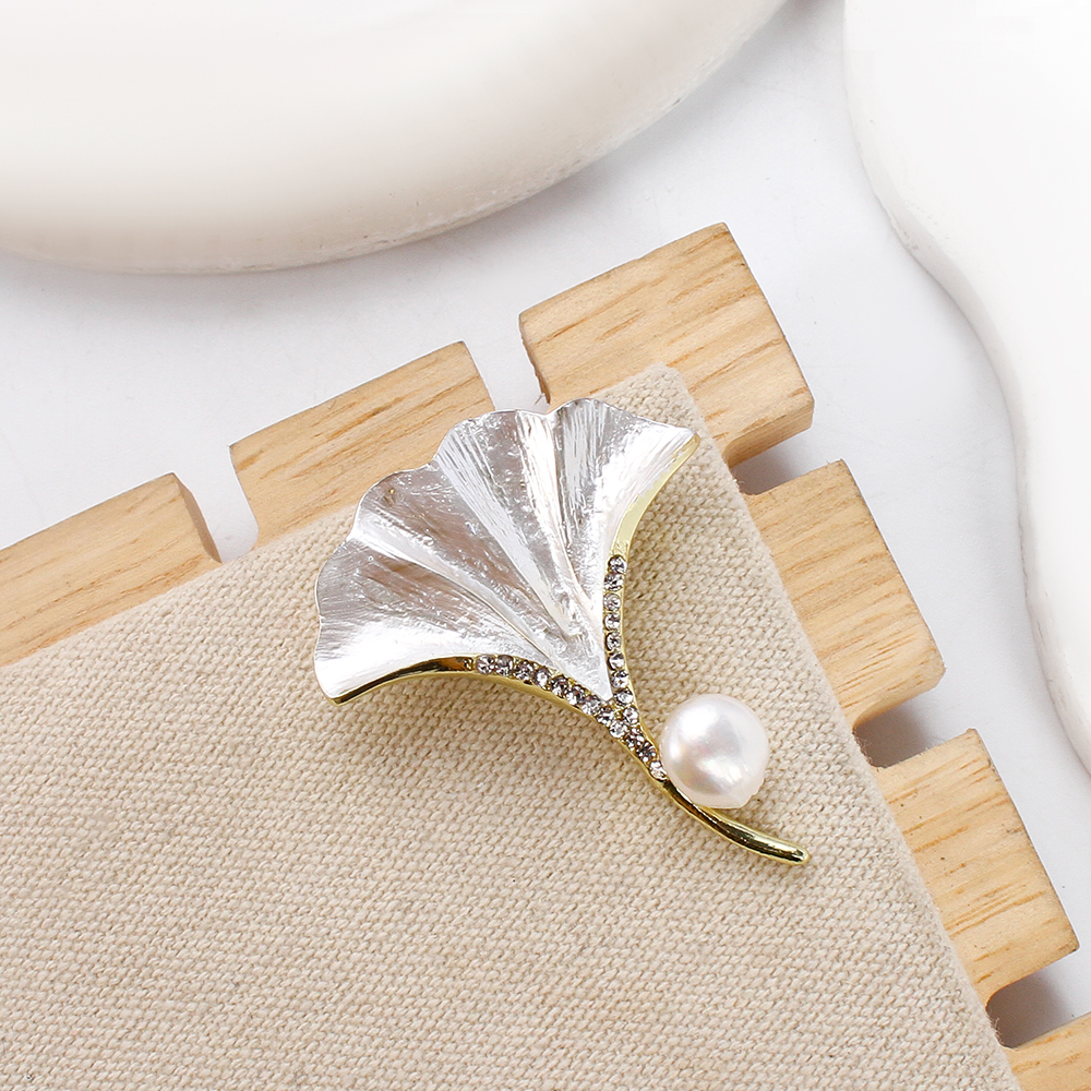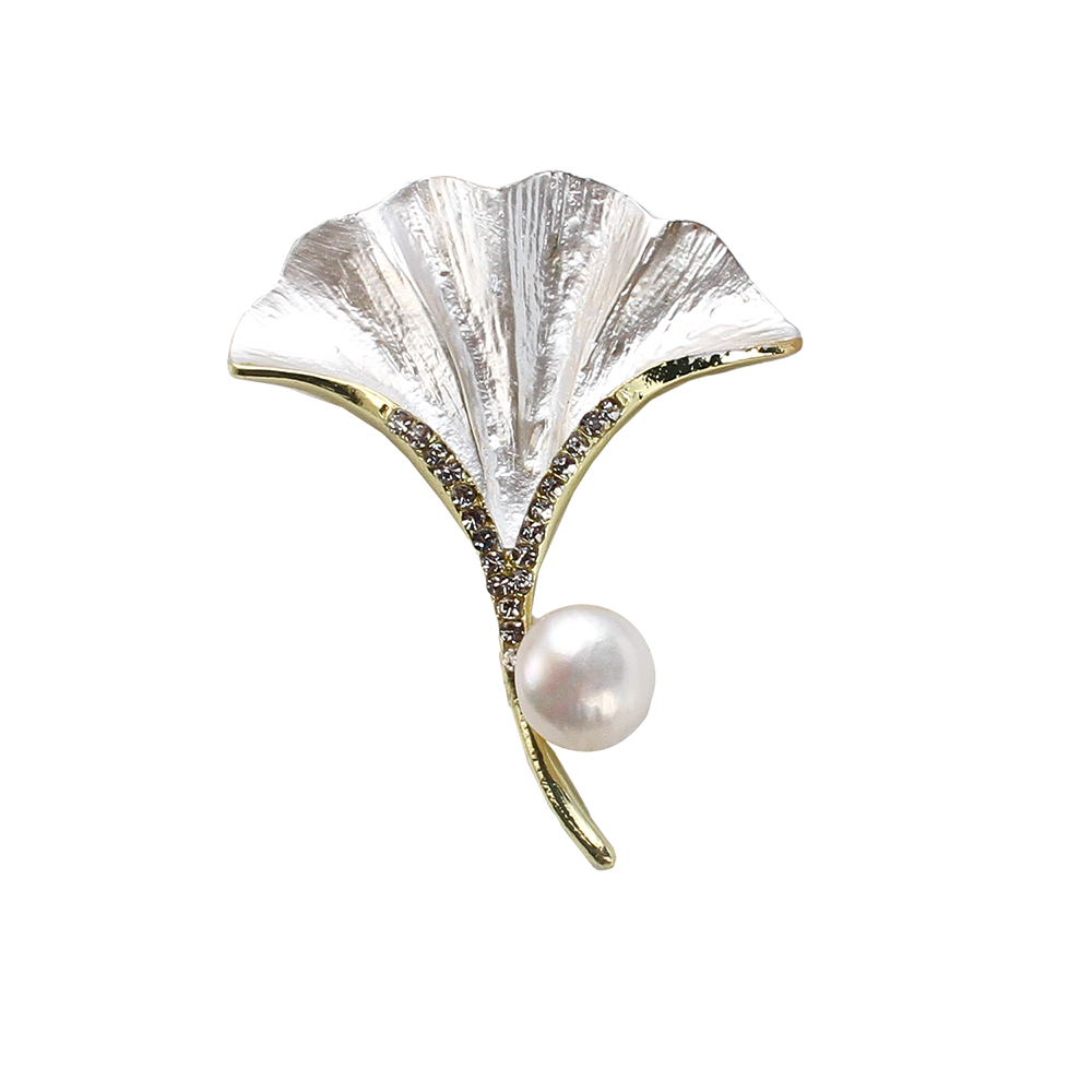 Broche perle d'eau douce, alliage de zinc, avec perle d'eau douce cultivée, Ginkgo Feuille, Placage de couleur d'or, bijoux de mode & émail & avec strass, plus de couleurs à choisir, 35.82x7.66x44.78mm, Vendu par PC
