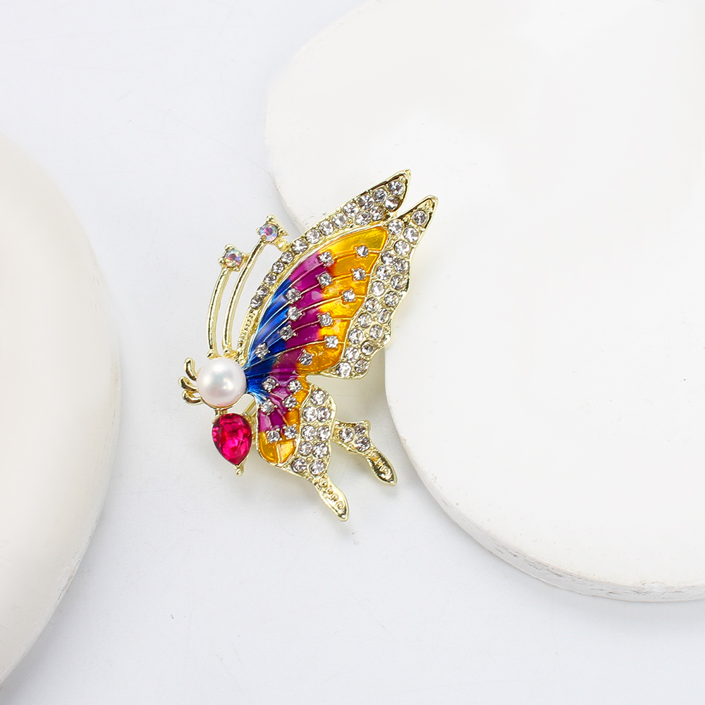 Broche perle d'eau douce, alliage de zinc, avec perle d'eau douce cultivée, papillon, Placage de couleur d'or, bijoux de mode & émail & avec strass, plus de couleurs à choisir, 35.96x13.16x54.99mm, Vendu par PC