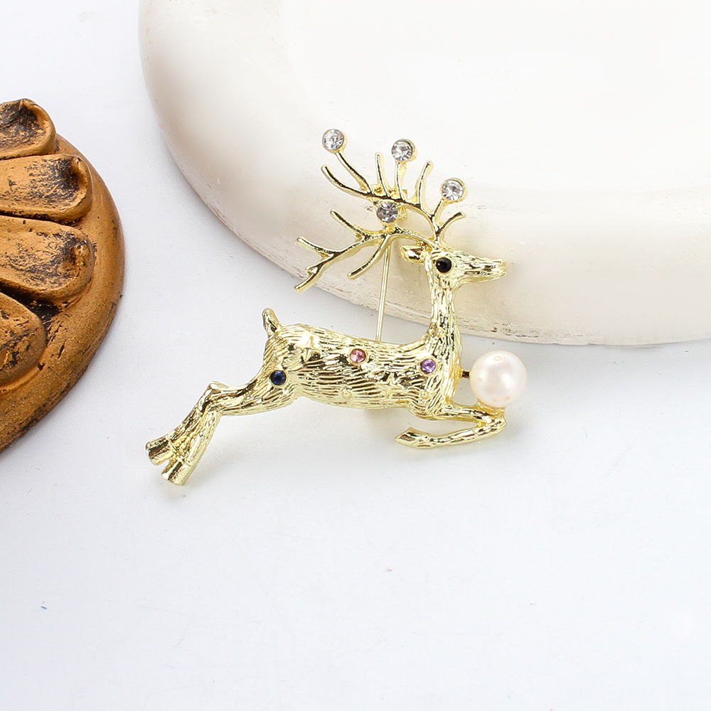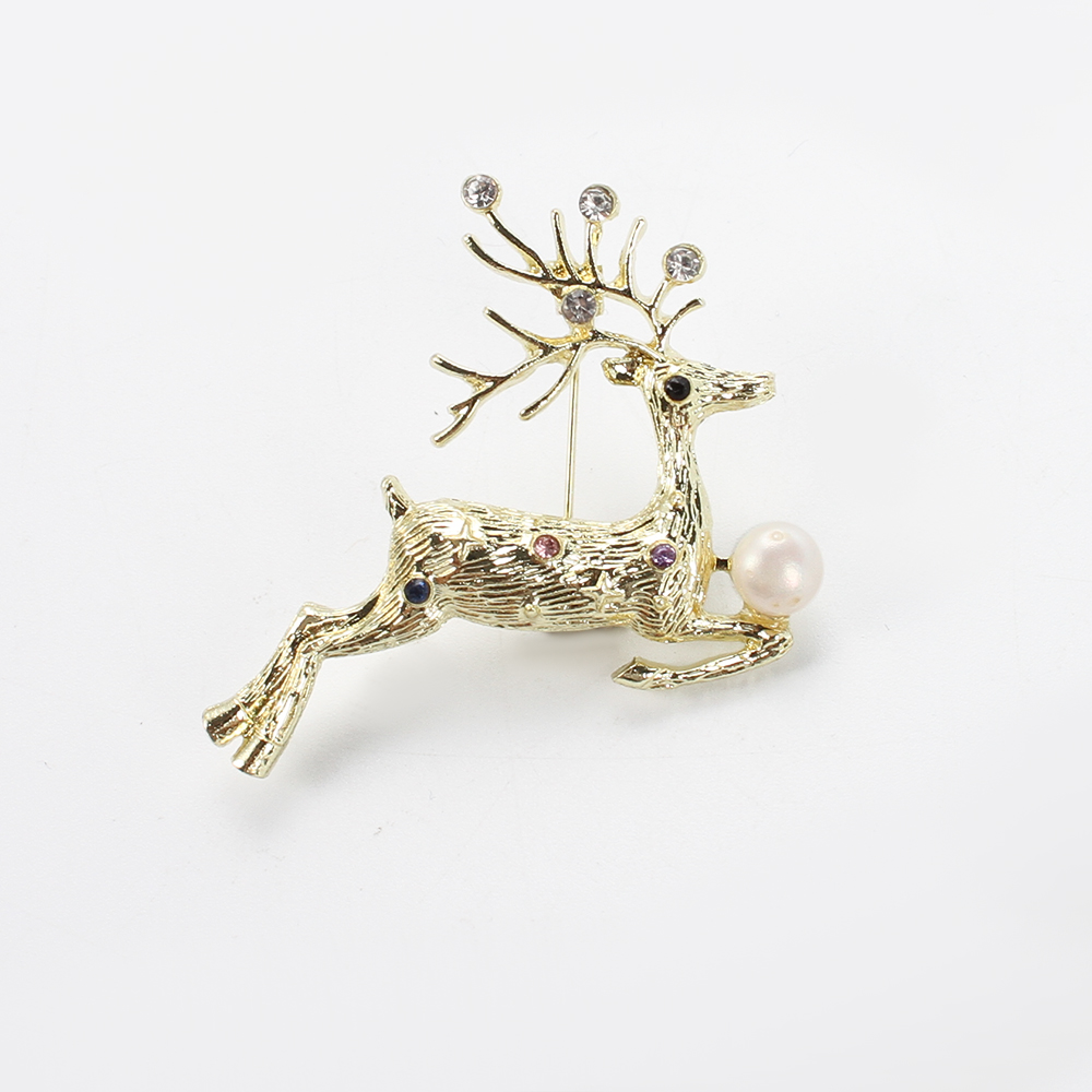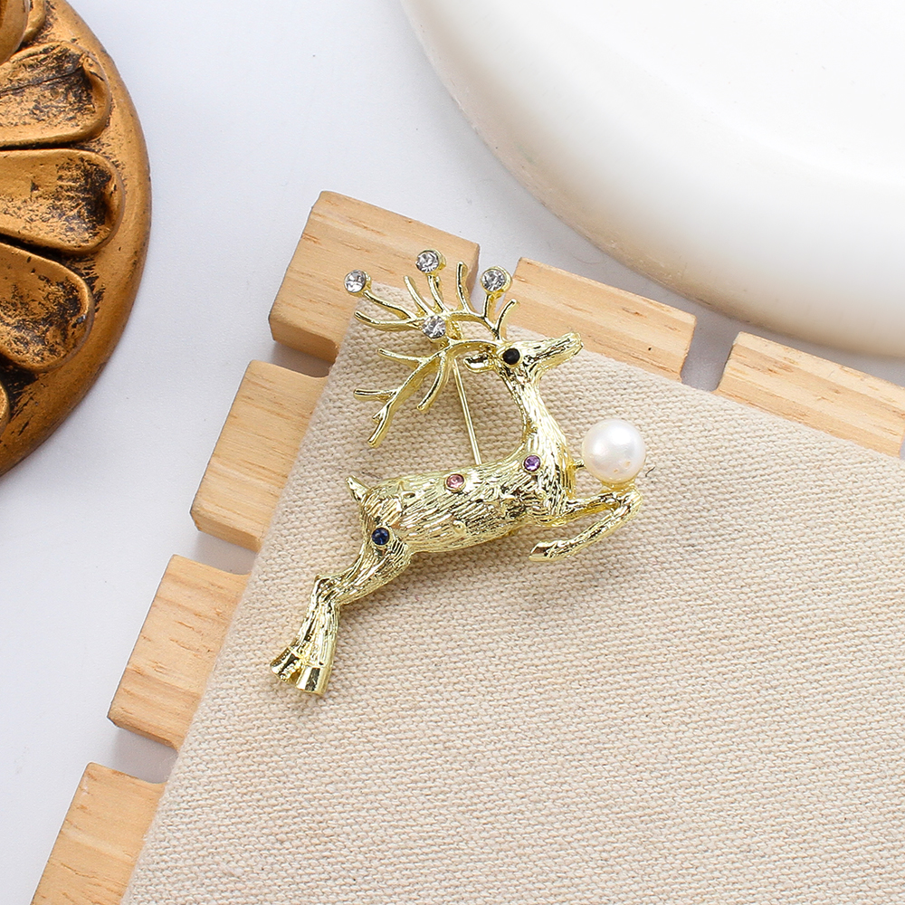 Broche perle d'eau douce, alliage de zinc, avec perle d'eau douce cultivée, gazelle, Placage de couleur d'or, bijoux de mode & avec strass, plus de couleurs à choisir, 46.9x10.61x48.61mm, Vendu par PC