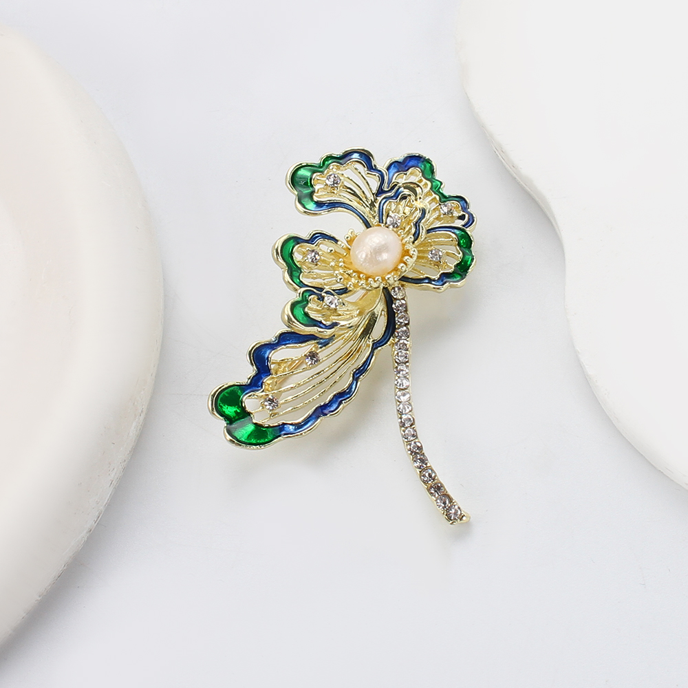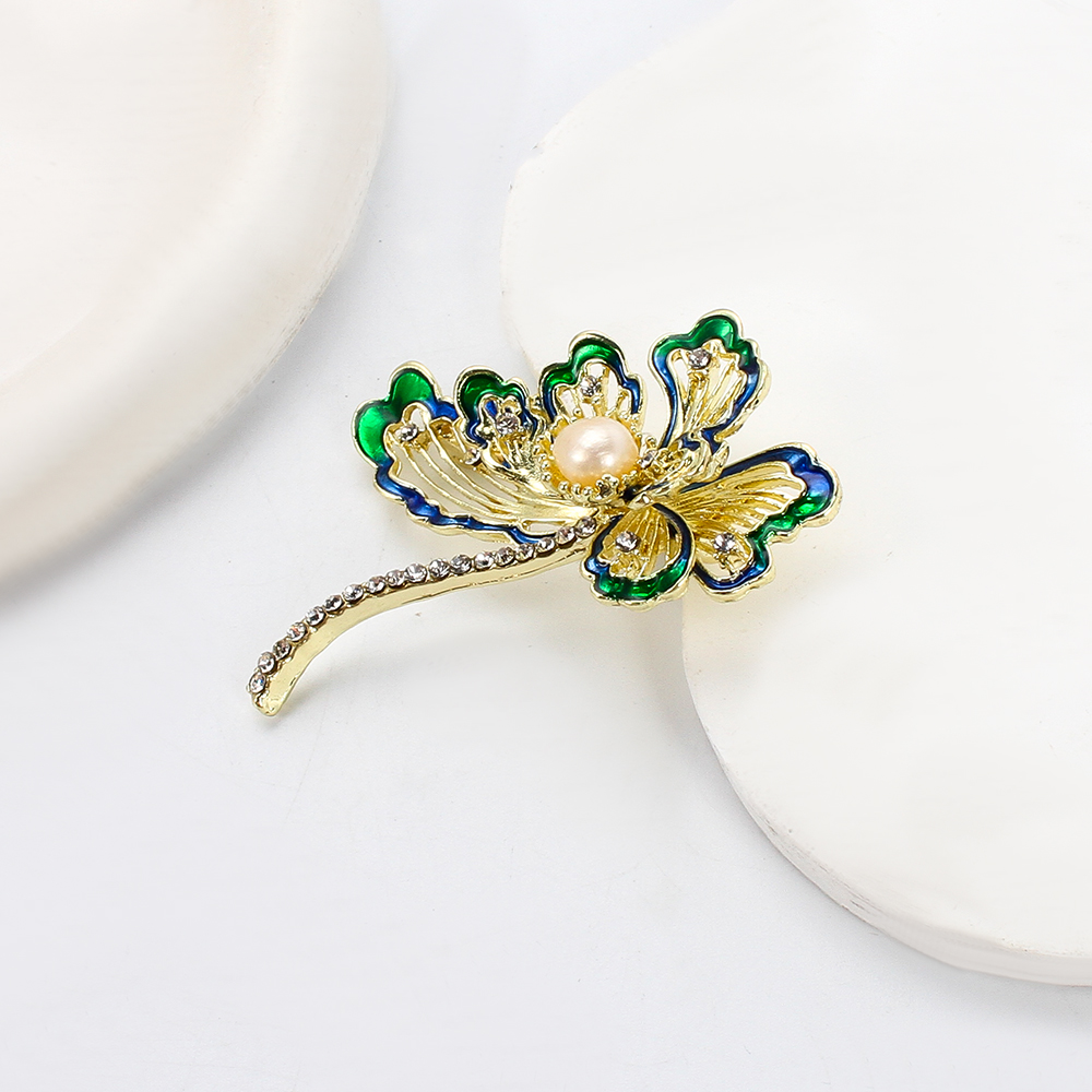 Broche perle d'eau douce, alliage de zinc, avec perle d'eau douce cultivée, fleur, Placage de couleur d'or, bijoux de mode & émail & avec strass, plus de couleurs à choisir, 54.46x17.57x63.23mm, Vendu par PC