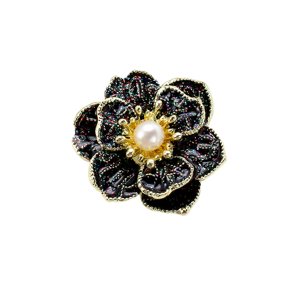 Broche perle d'eau douce, alliage de zinc, avec perle d'eau douce cultivée, fleur, Placage de couleur d'or, bijoux de mode & émail, plus de couleurs à choisir, 35.12x13.74x31.43mm, Vendu par PC