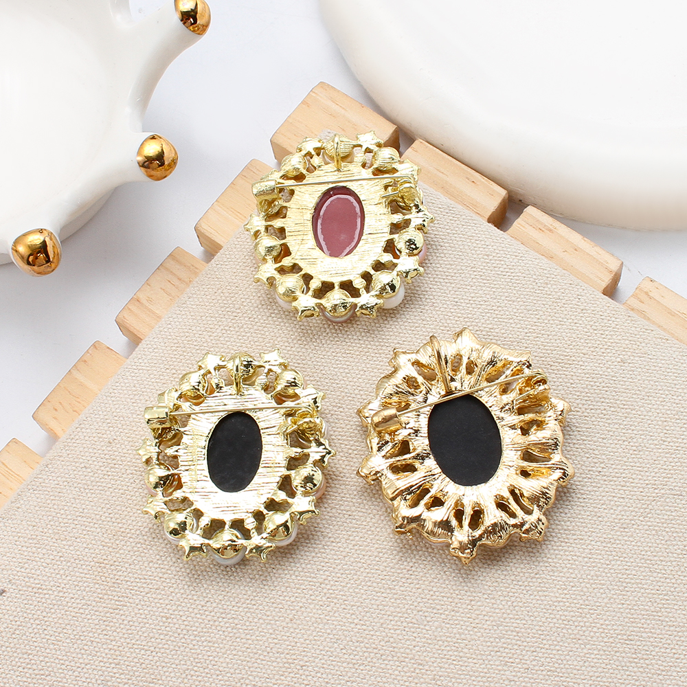Broche perle d'eau douce, alliage de zinc, avec perle d'eau douce cultivée & résine, Placage de couleur d'or, bijoux de mode & avec strass, plus de couleurs à choisir Vendu par PC