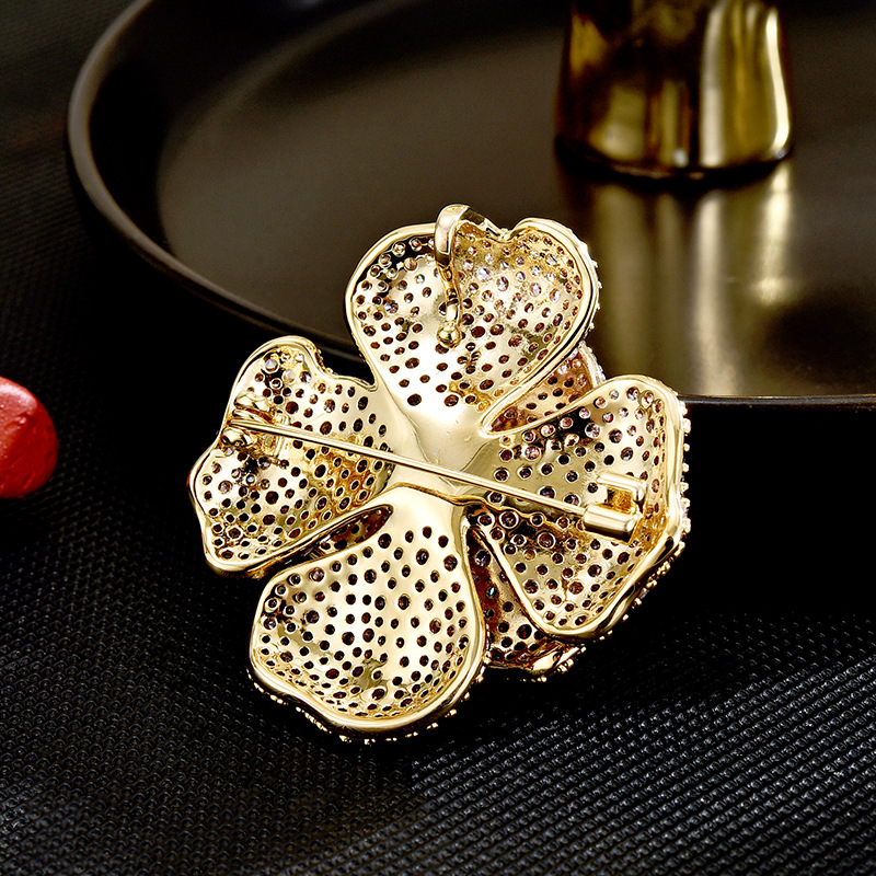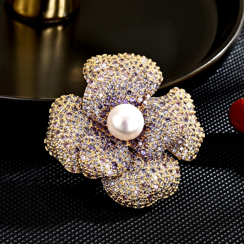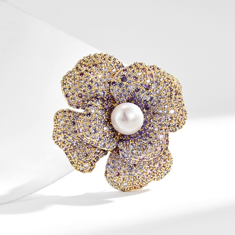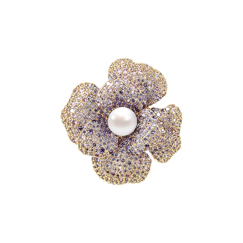Broche perle d'eau douce, laiton, avec perle d'eau douce cultivée, pavé de micro zircon & pour femme, doré, 42x44mm, Vendu par PC