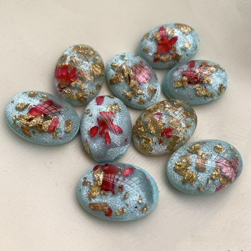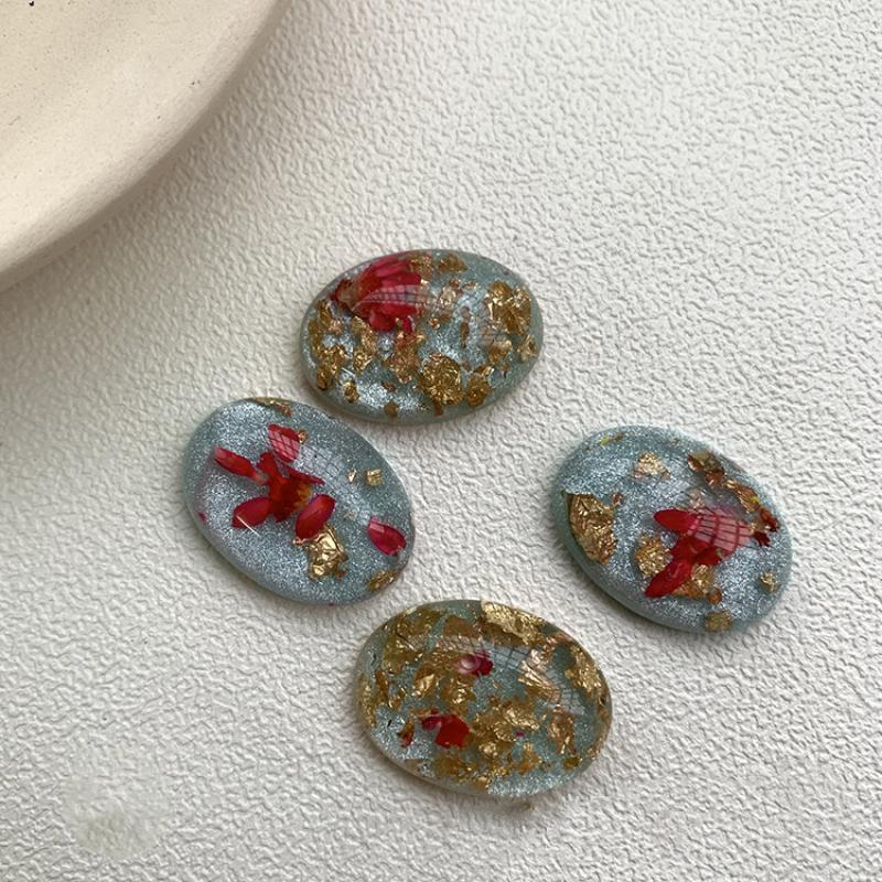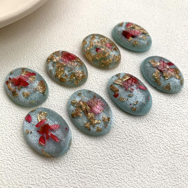 Cabochon résine fleur intérieur, avec Fleurs séchées, ovale, DIY, bleu, Vendu par PC