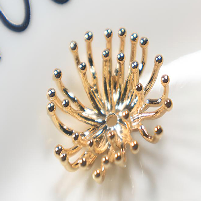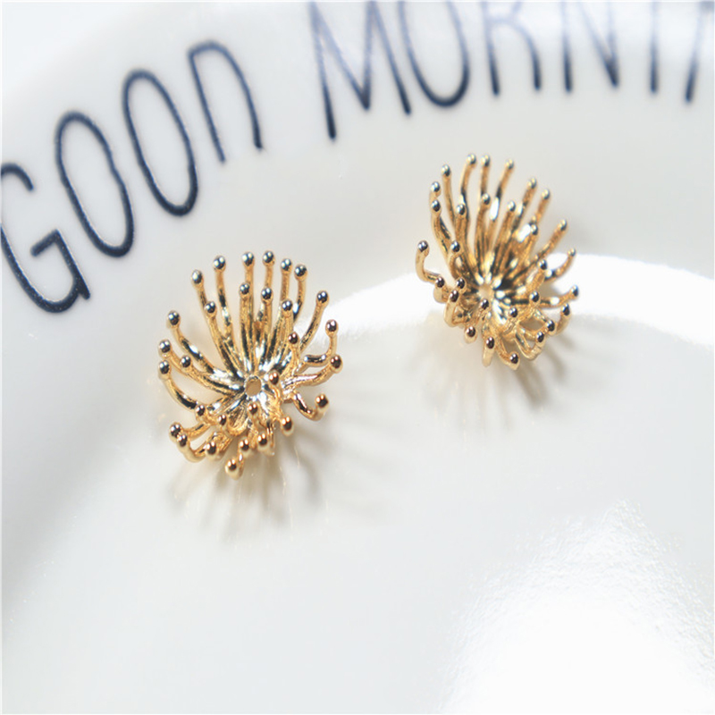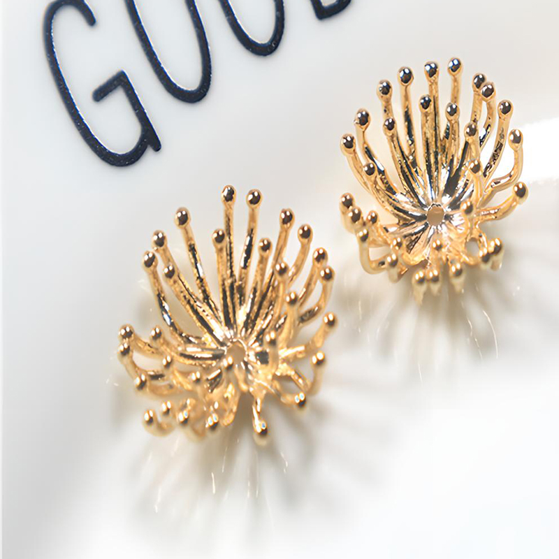 Capuchon pour perle en laiton, fleur, plaqué de couleur d'or KC, DIY, 15mm, Vendu par PC