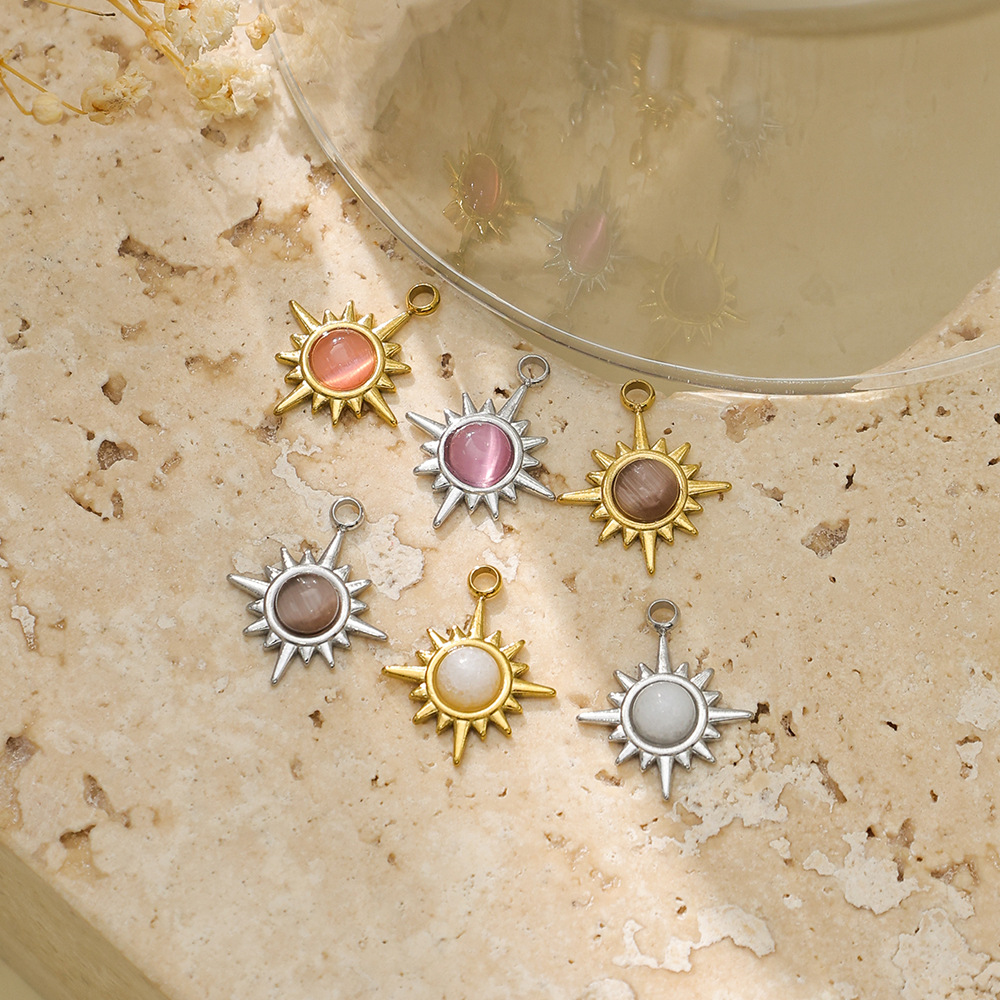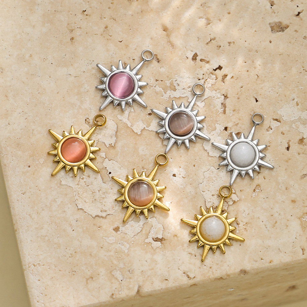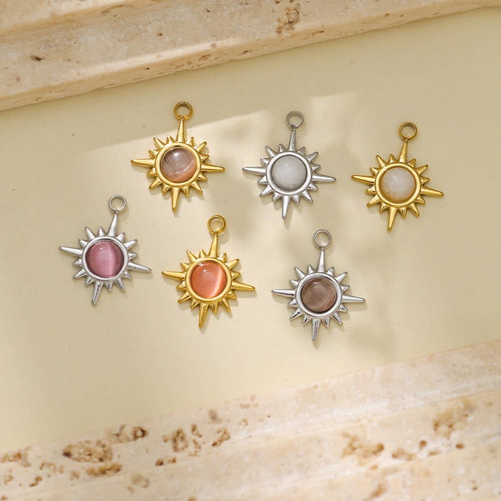 Cats Eye pendentifs en acier inoxydable, Acier inoxydable 304, avec Oeil de chat, Placage de couleur d'or, DIY, plus de couleurs à choisir, protéger l'environnement, sans nickel, plomb et cadmium, 10PC/sac, Vendu par sac