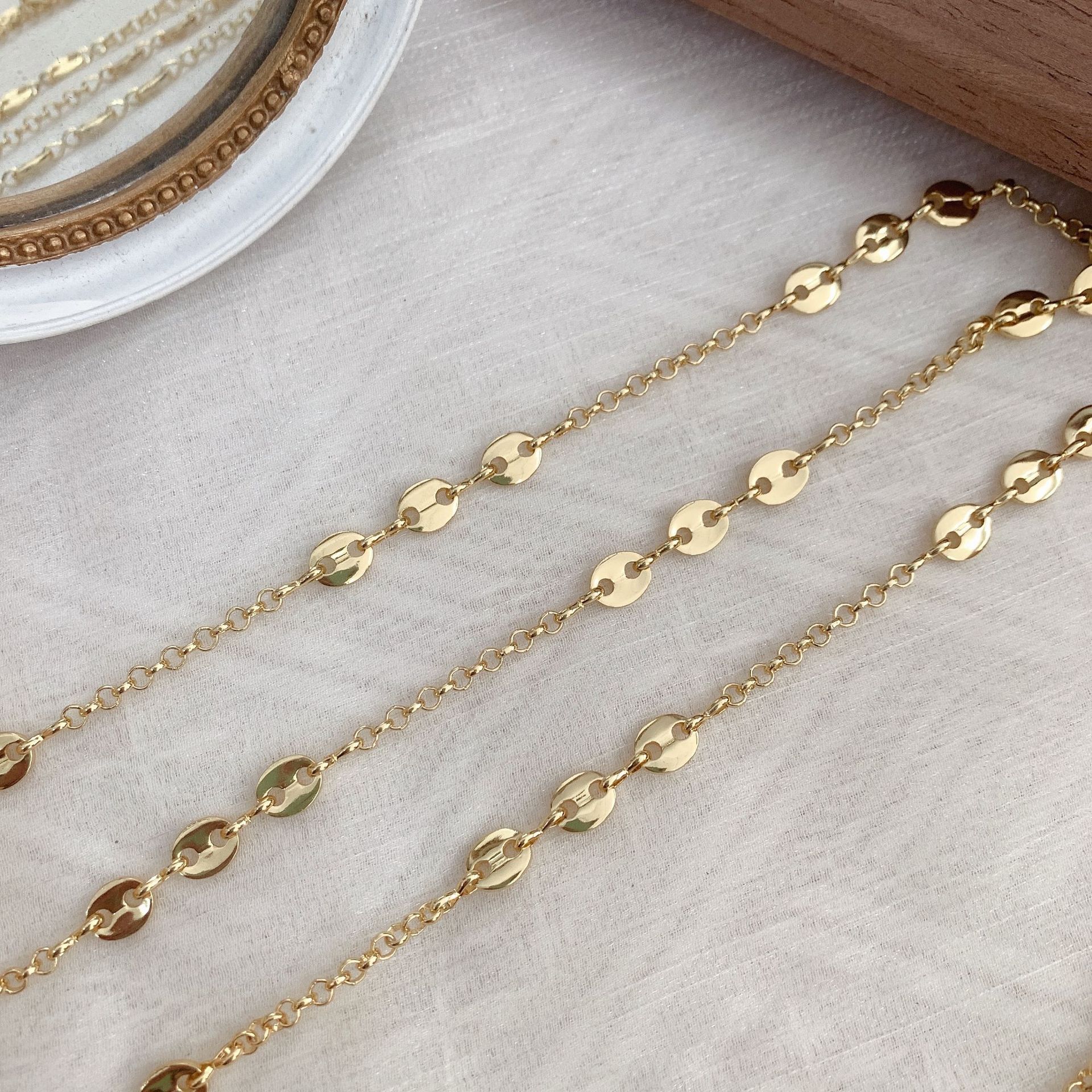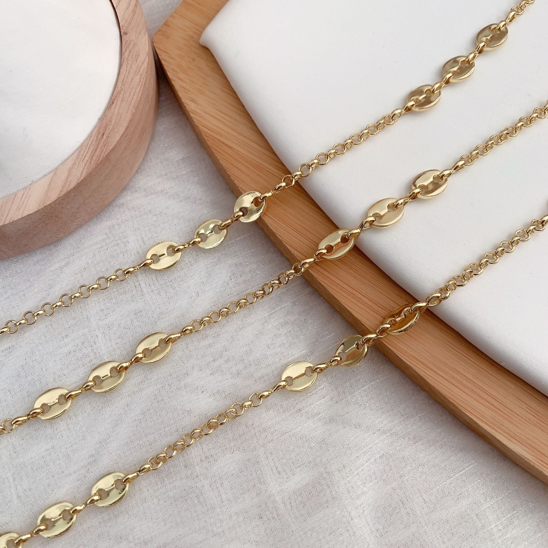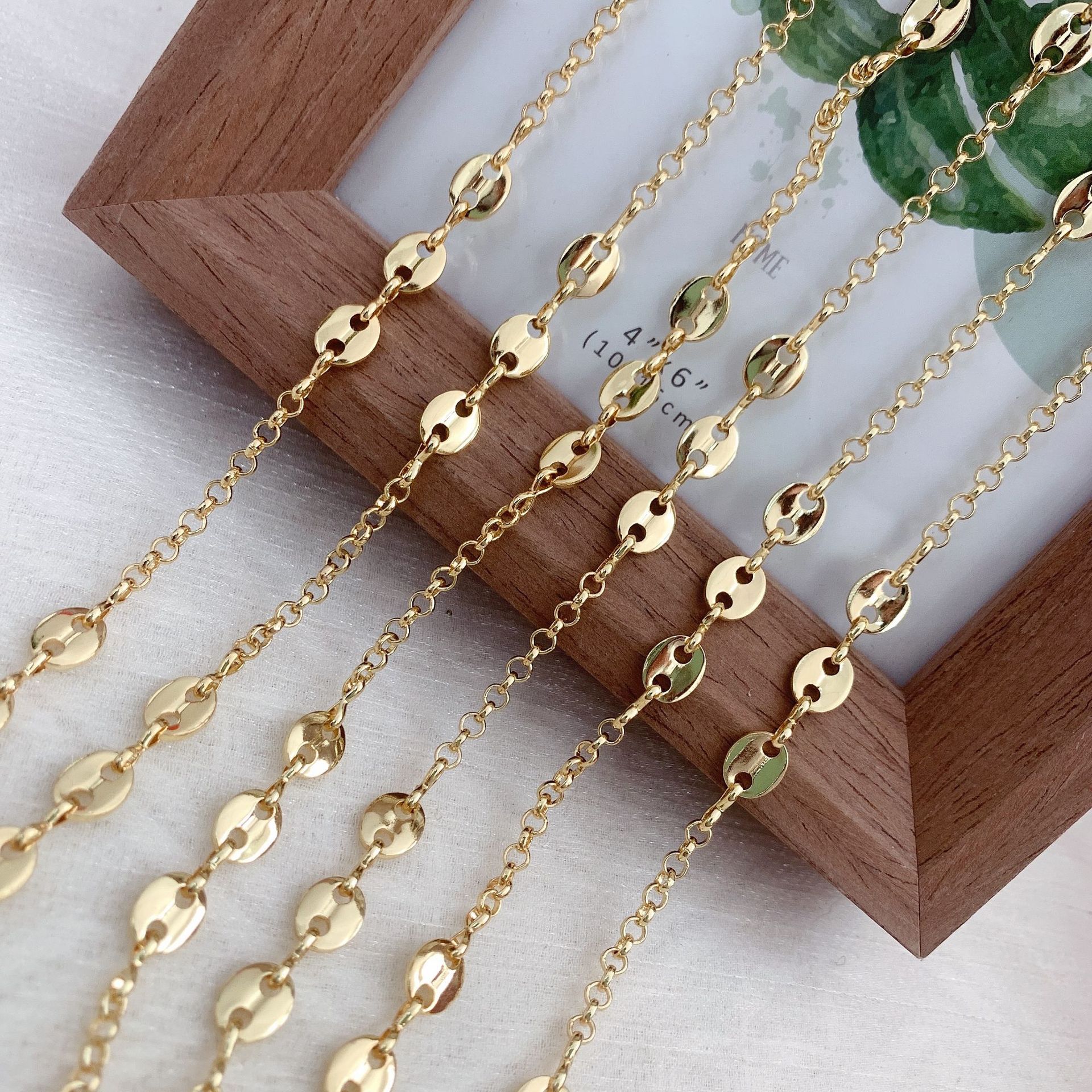 Chaine bijoux en laiton, Placage de couleur d'or, DIY, 10m/sac, Vendu par sac