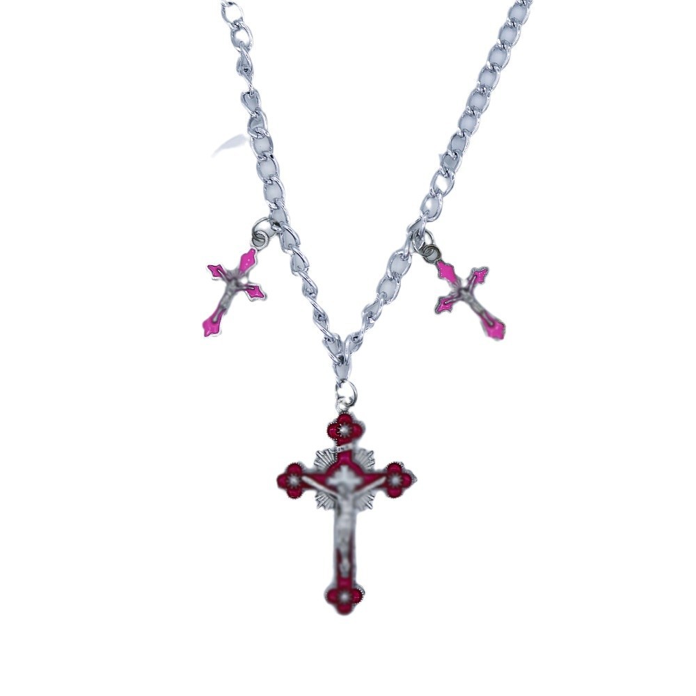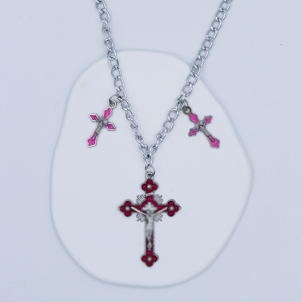 Chaîne en alliage de zinc de fer Collier Pull, croix, Placage de couleur d'or, bijoux de mode & émail, plus de couleurs à choisir, Vendu par PC