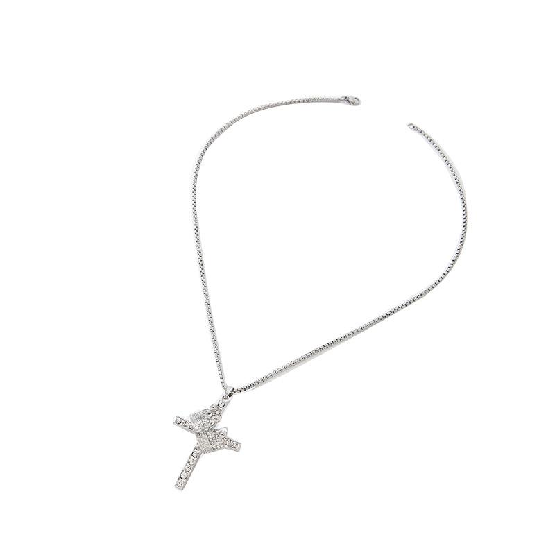 Chaîne en alliage de zinc de fer Collier Pull, croix, Placage de couleur d'or, bijoux de mode & avec strass, plus de couleurs à choisir, Vendu par PC