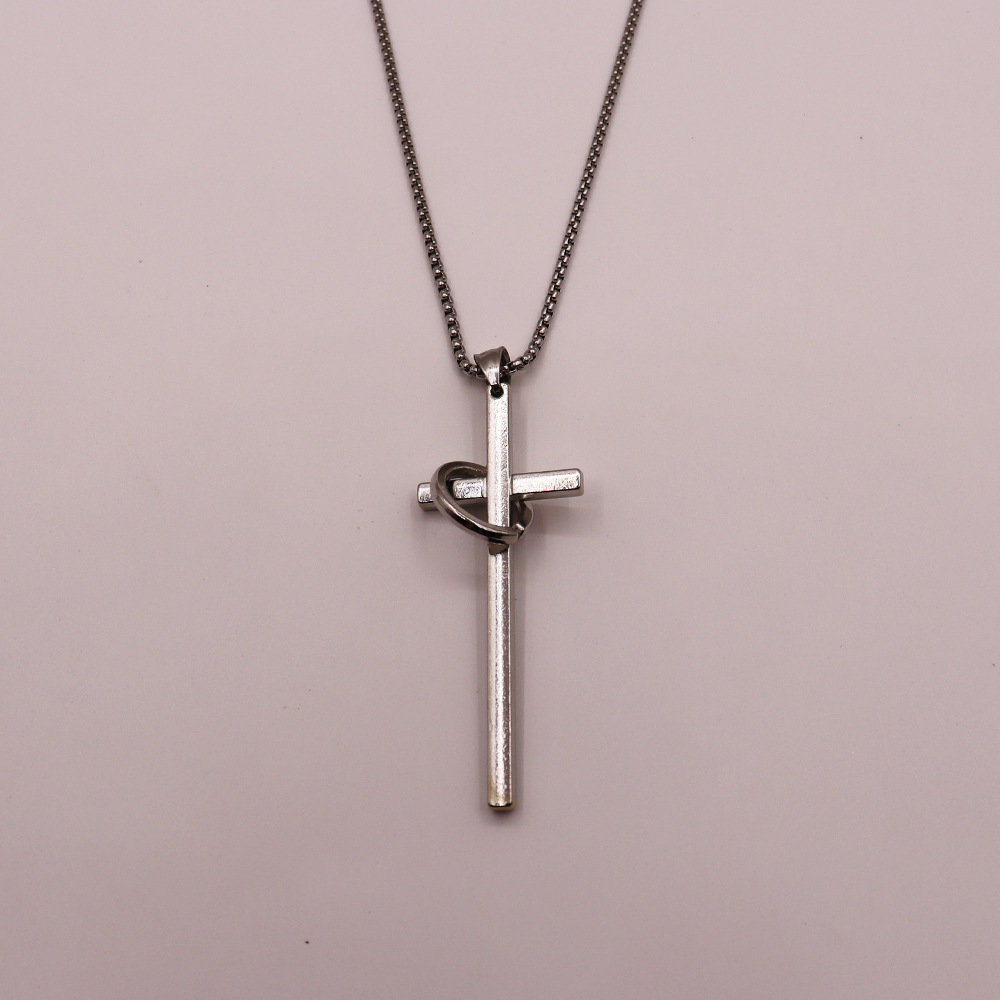 Chaîne en alliage de zinc de fer Collier Pull, croix, Placage de couleur d'or, bijoux de mode, argent, Vendu par sac