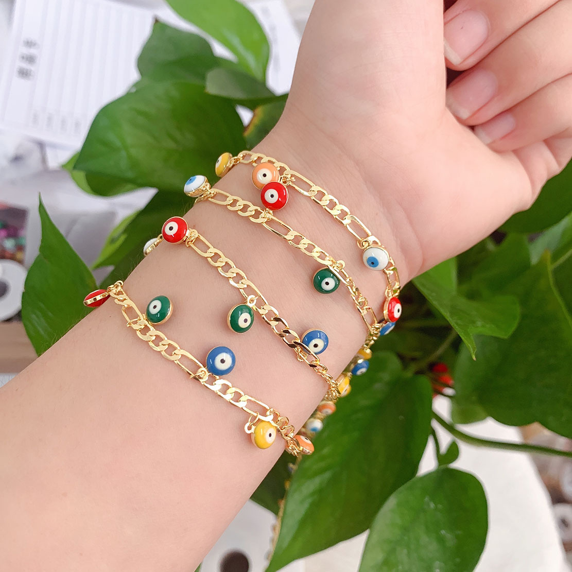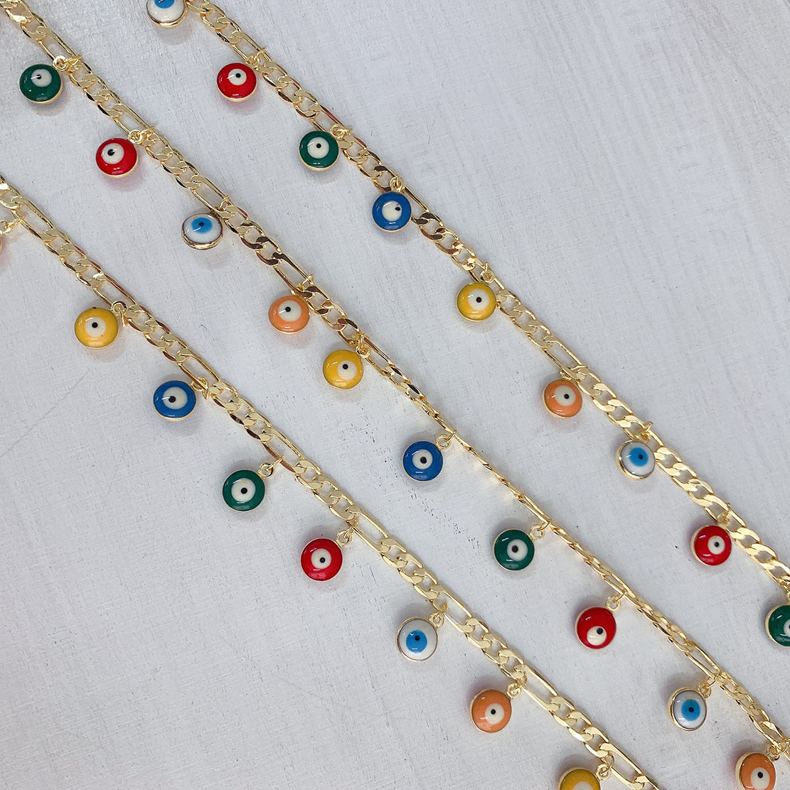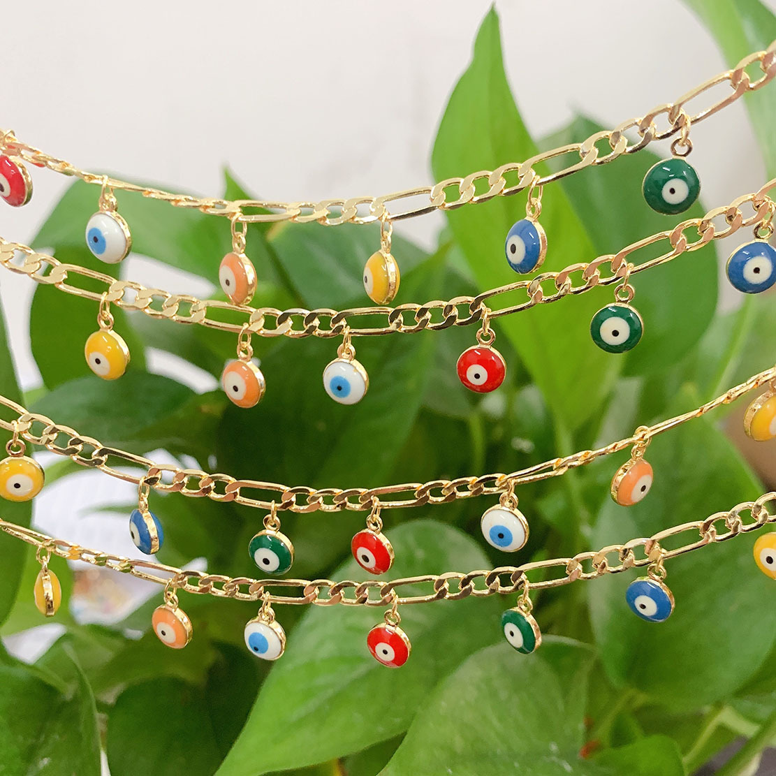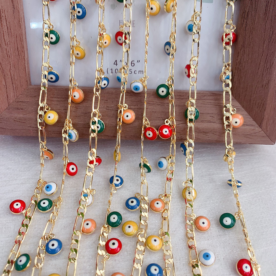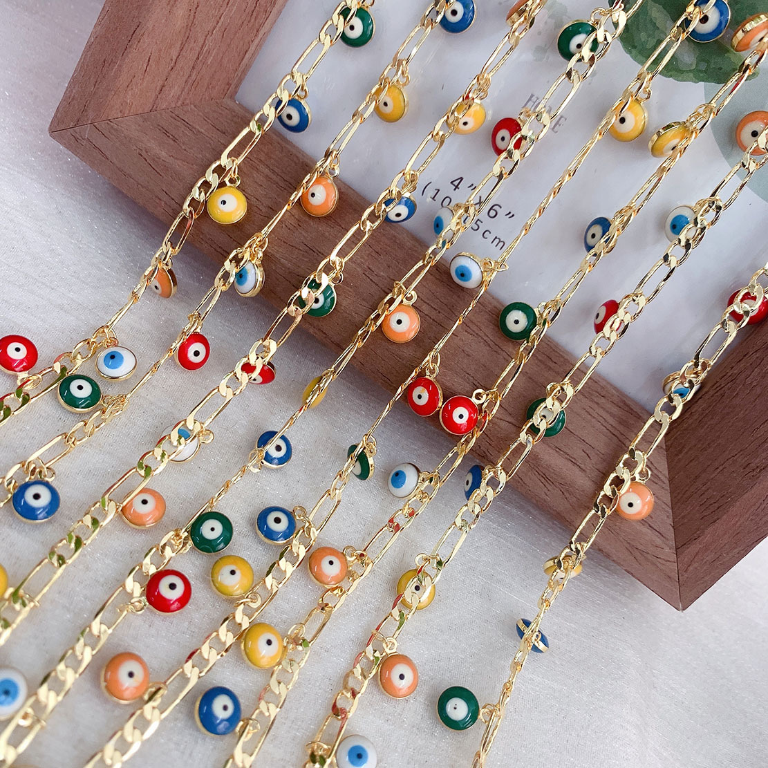 Chaînes de bijouterie de mauvais œil, laiton, Rond, Placage de couleur d'or, DIY & motif de mauvais œil & émail, couleurs mélangées, 10m/sac, Vendu par sac