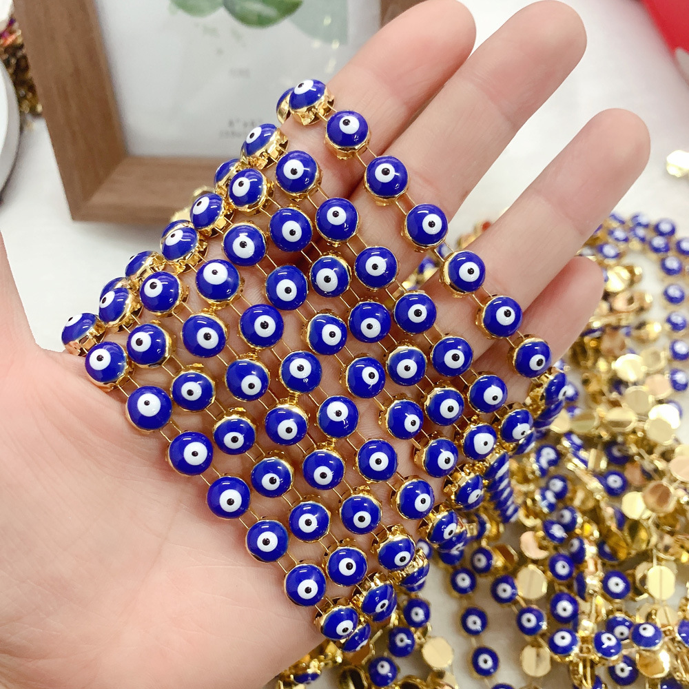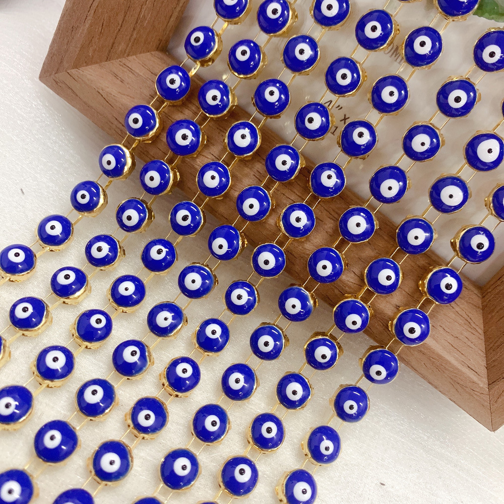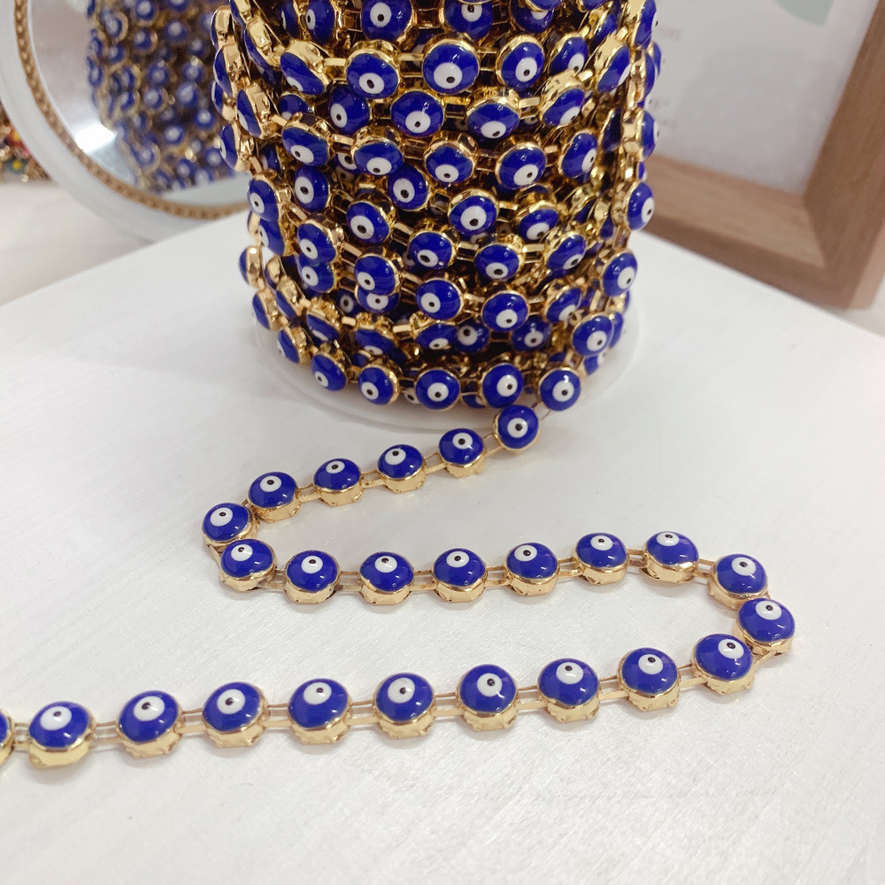 Chaînes de bijouterie de mauvais œil, laiton, Placage de couleur d'or, DIY & émail, bleu, 10m/sac, Vendu par sac