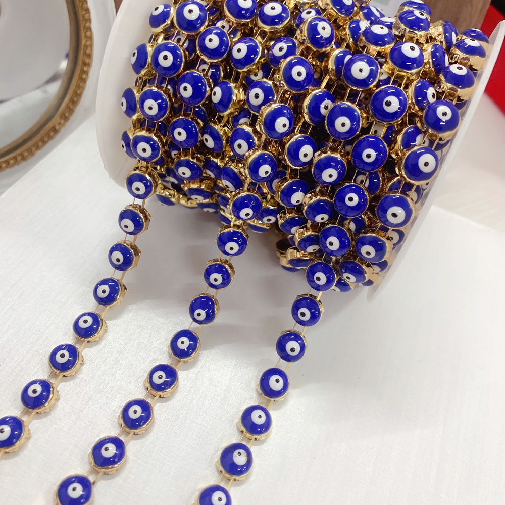 Chaînes de bijouterie de mauvais œil, résine, avec laiton, Placage, fait à la main, plus de couleurs à choisir, 5mm Vendu par m