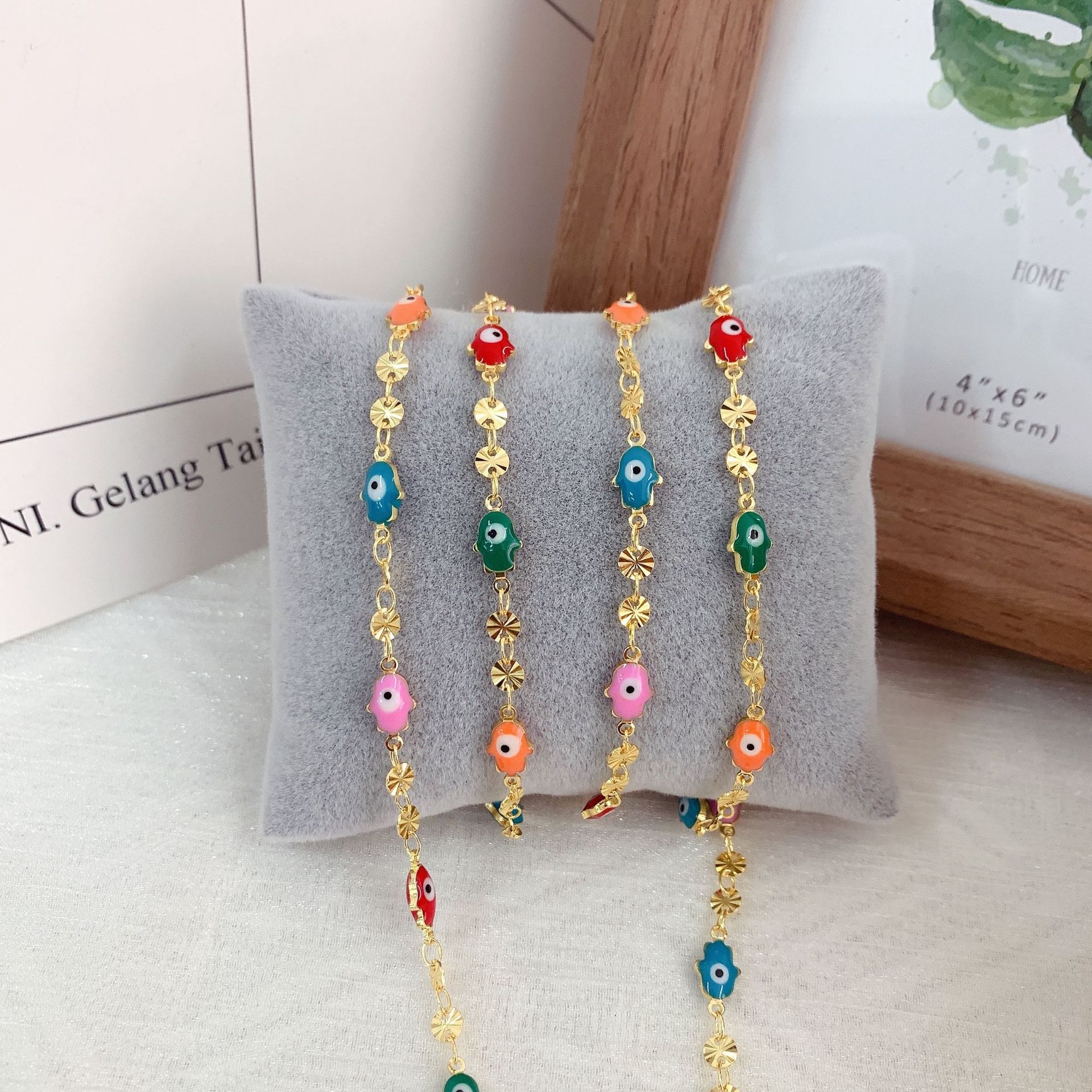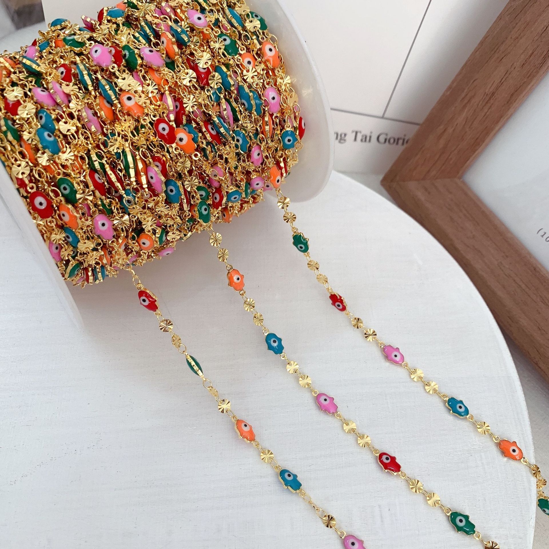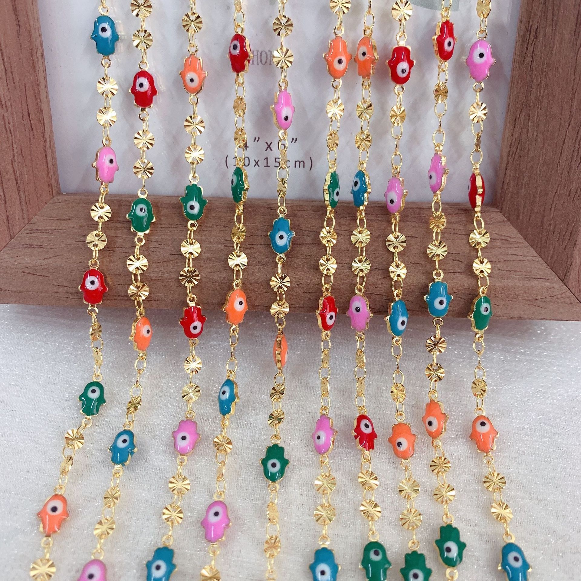 Chaînes de bijouterie de mauvais œil, laiton, Placage de couleur d'or, DIY & motif de mauvais œil & émail, couleurs mélangées, 10m/sac, Vendu par sac