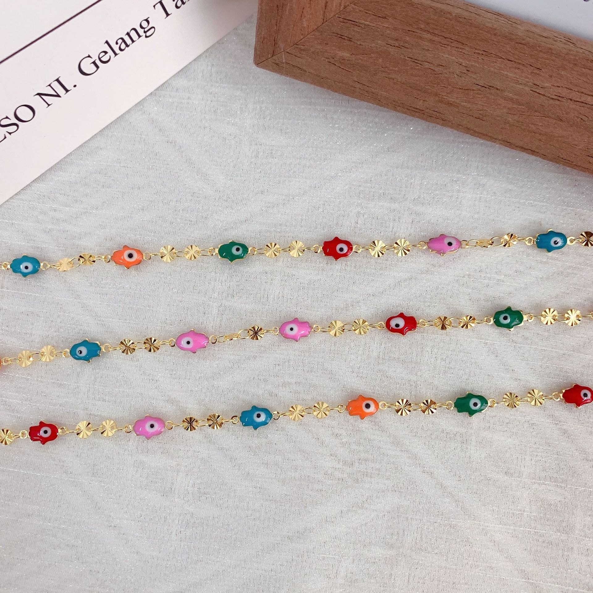 Chaînes de bijouterie de mauvais œil, laiton, fleur, motif de mauvais œil & émail, multicolore, protéger l'environnement, sans nickel, plomb et cadmium Vendu par m