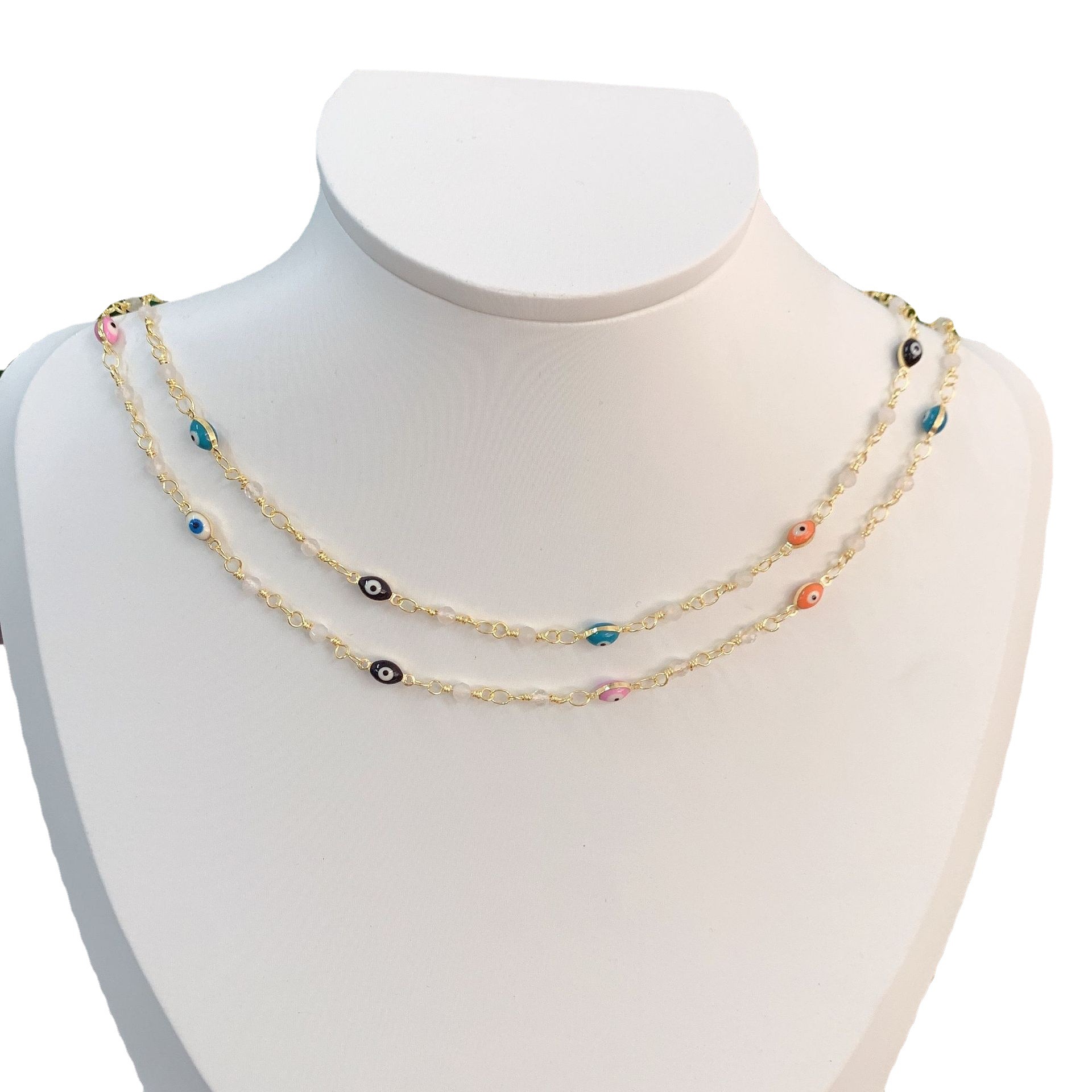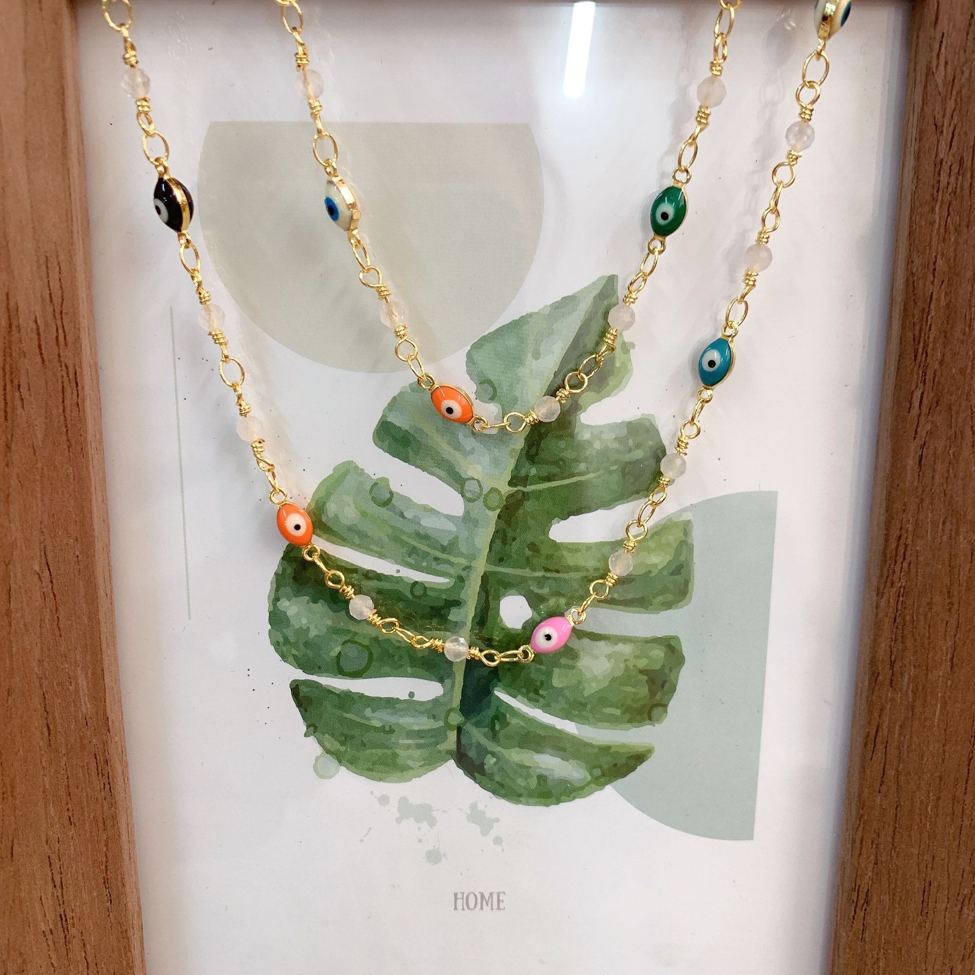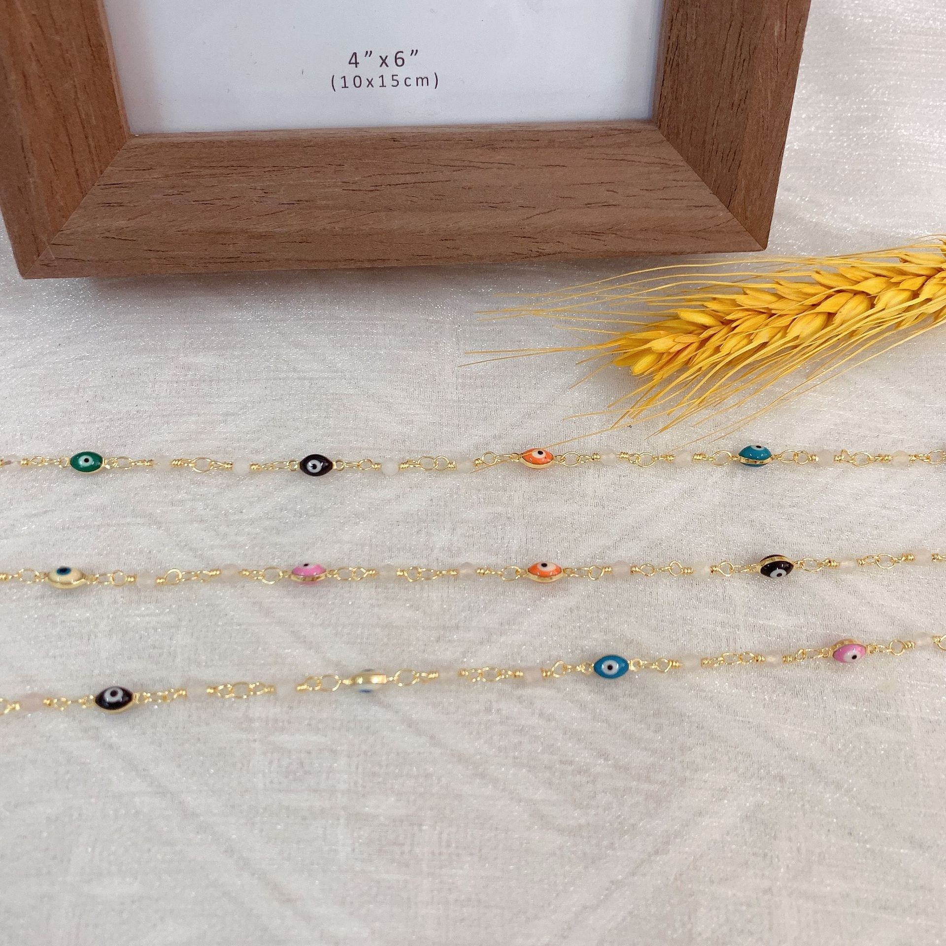 Chaînes de bijouterie de mauvais œil, laiton, avec plastique, Placage de couleur d'or, DIY & émail, couleurs mélangées, Vendu par PC