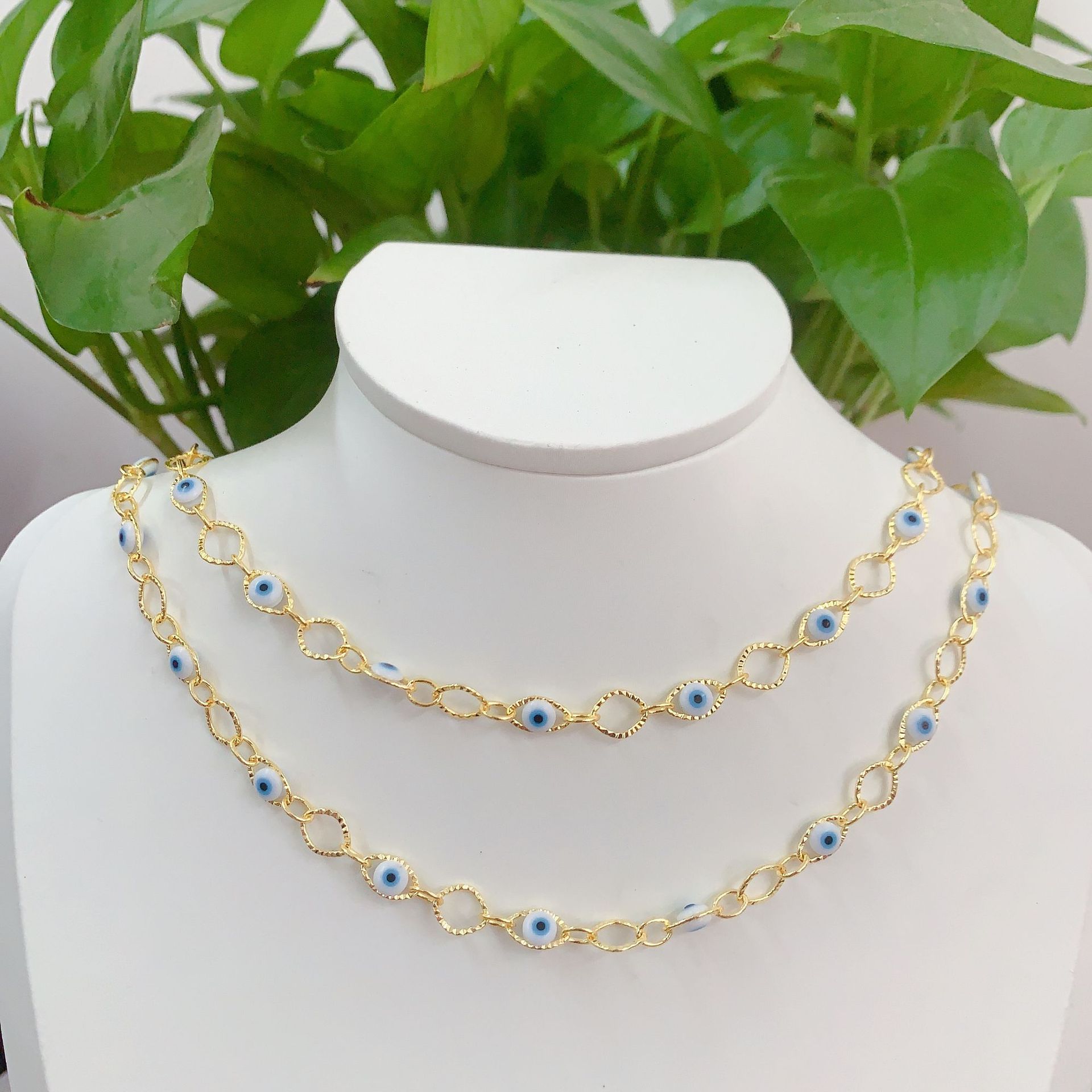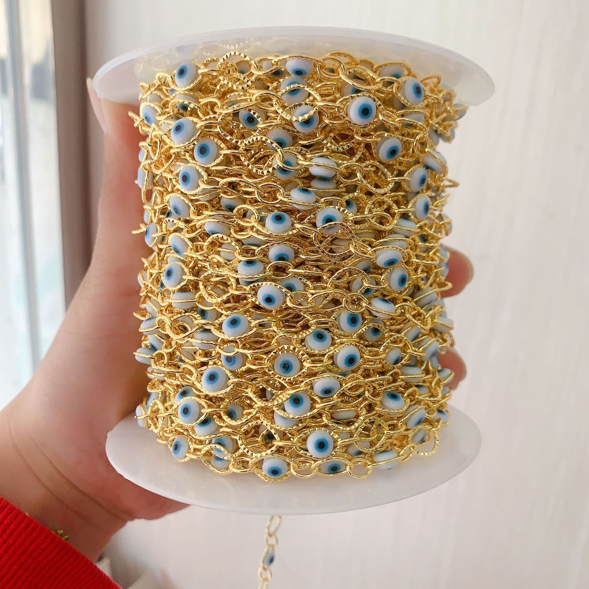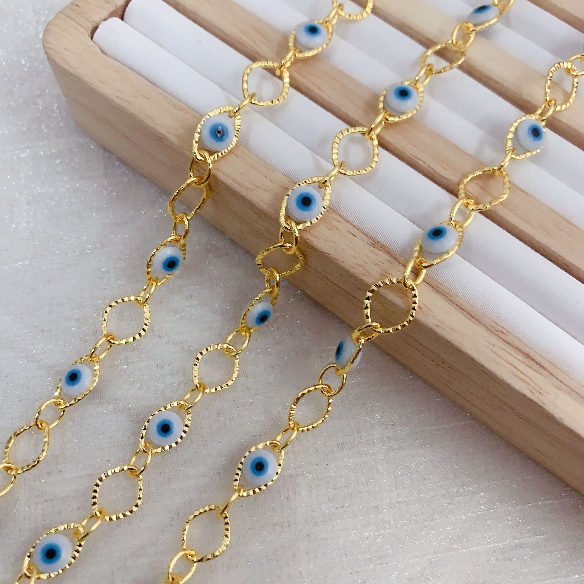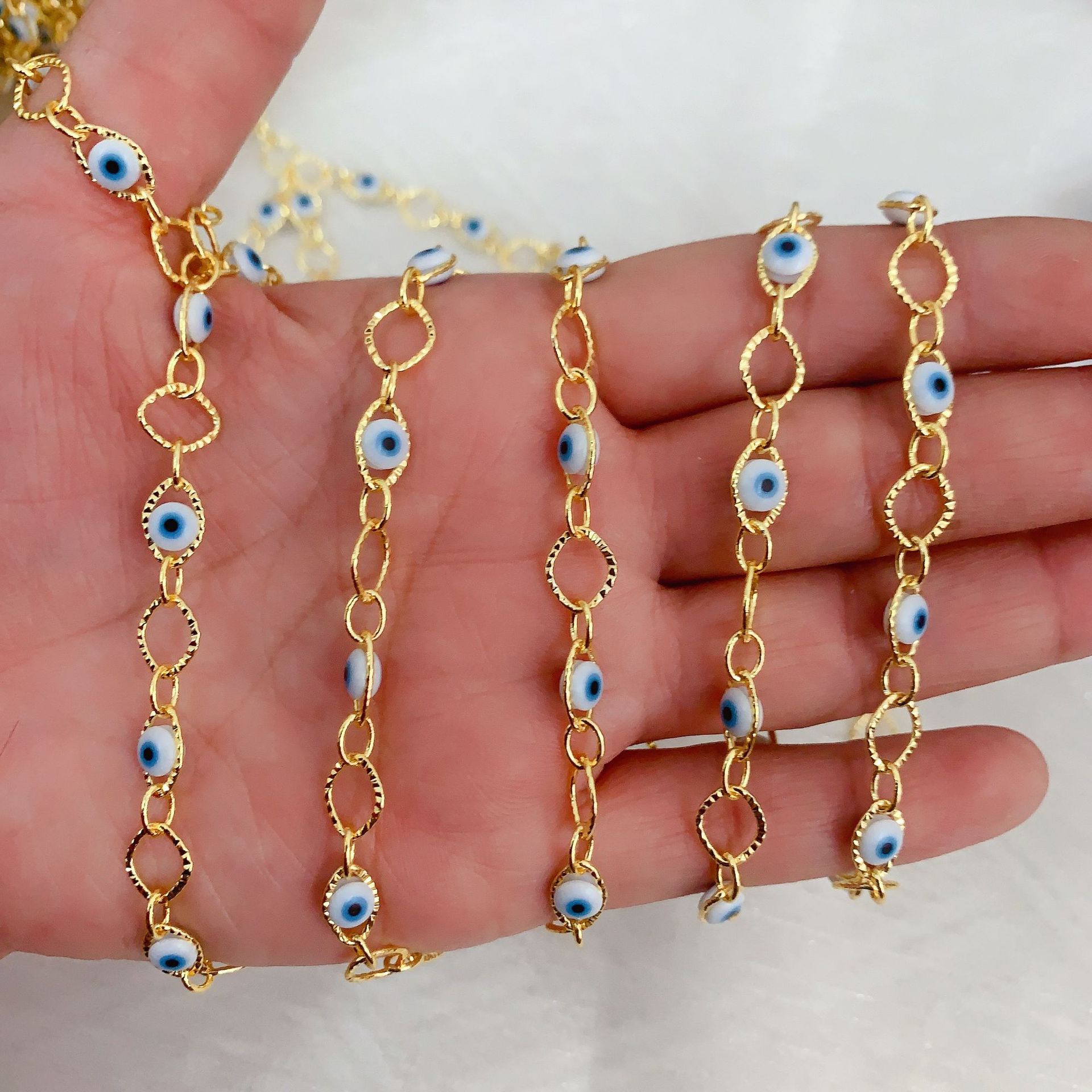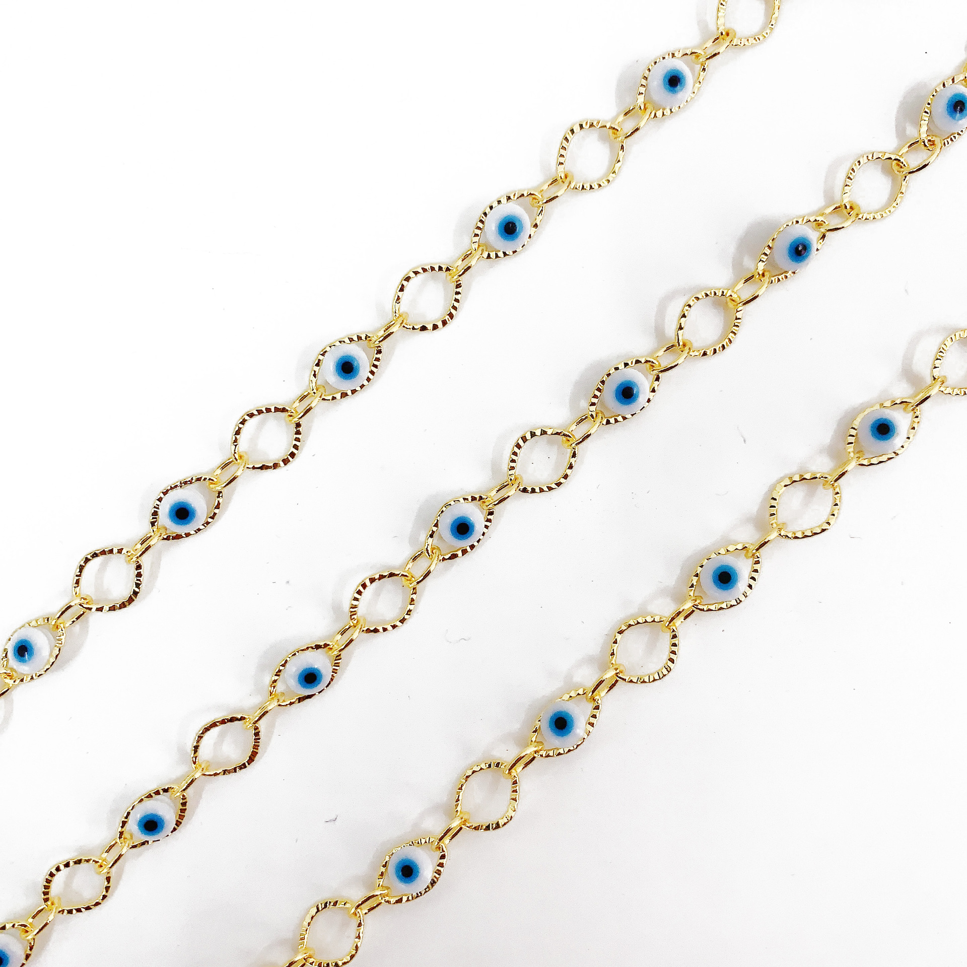 Chaînes de bijouterie de mauvais œil, laiton, avec résine, Placage de couleur d'or, DIY & motif de mauvais œil, couleurs mélangées, 10m/sac, Vendu par sac