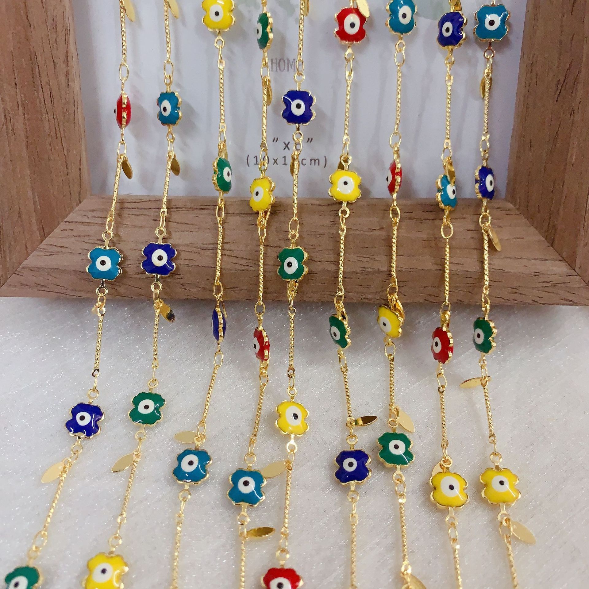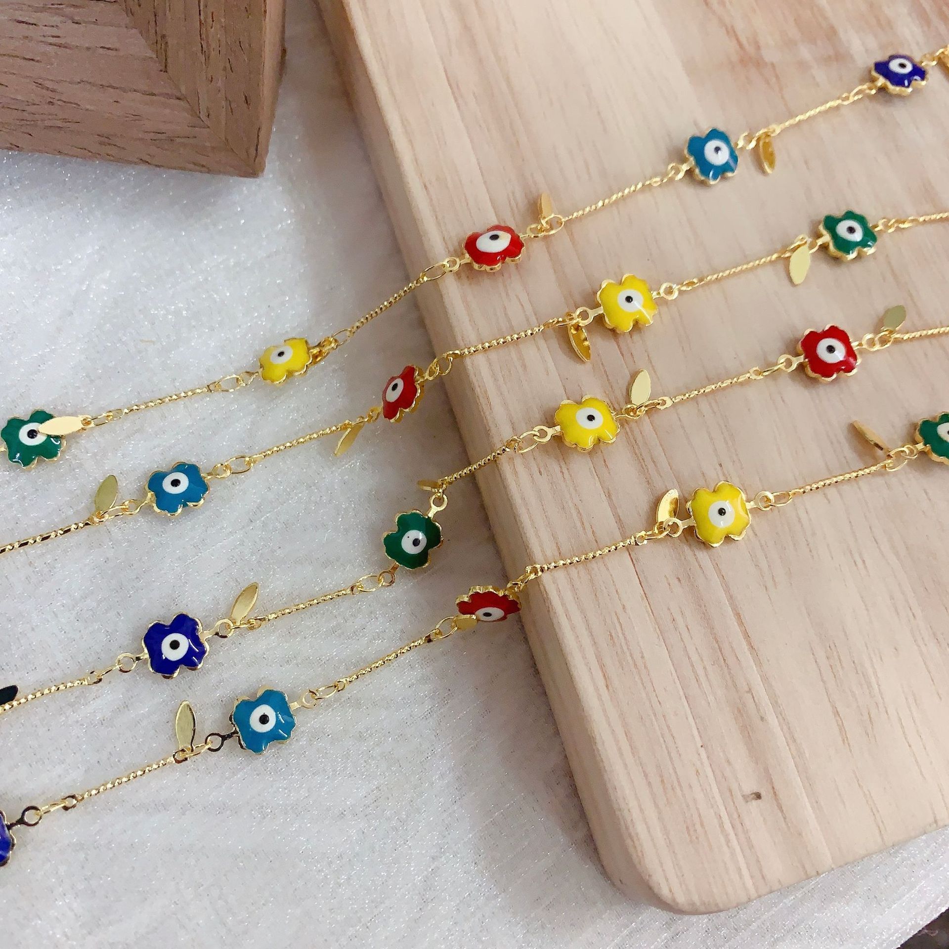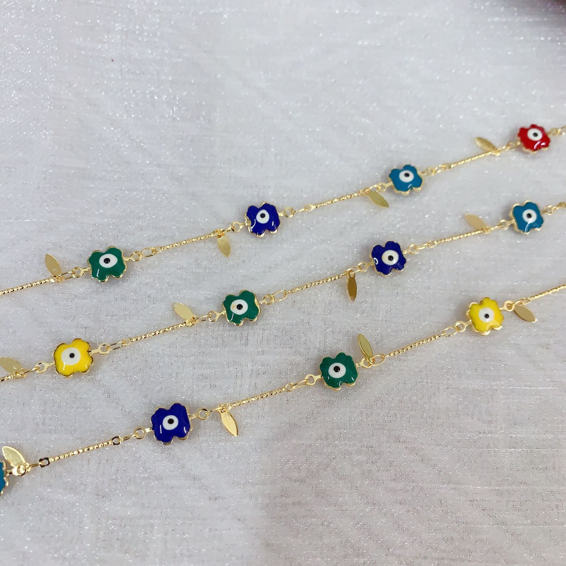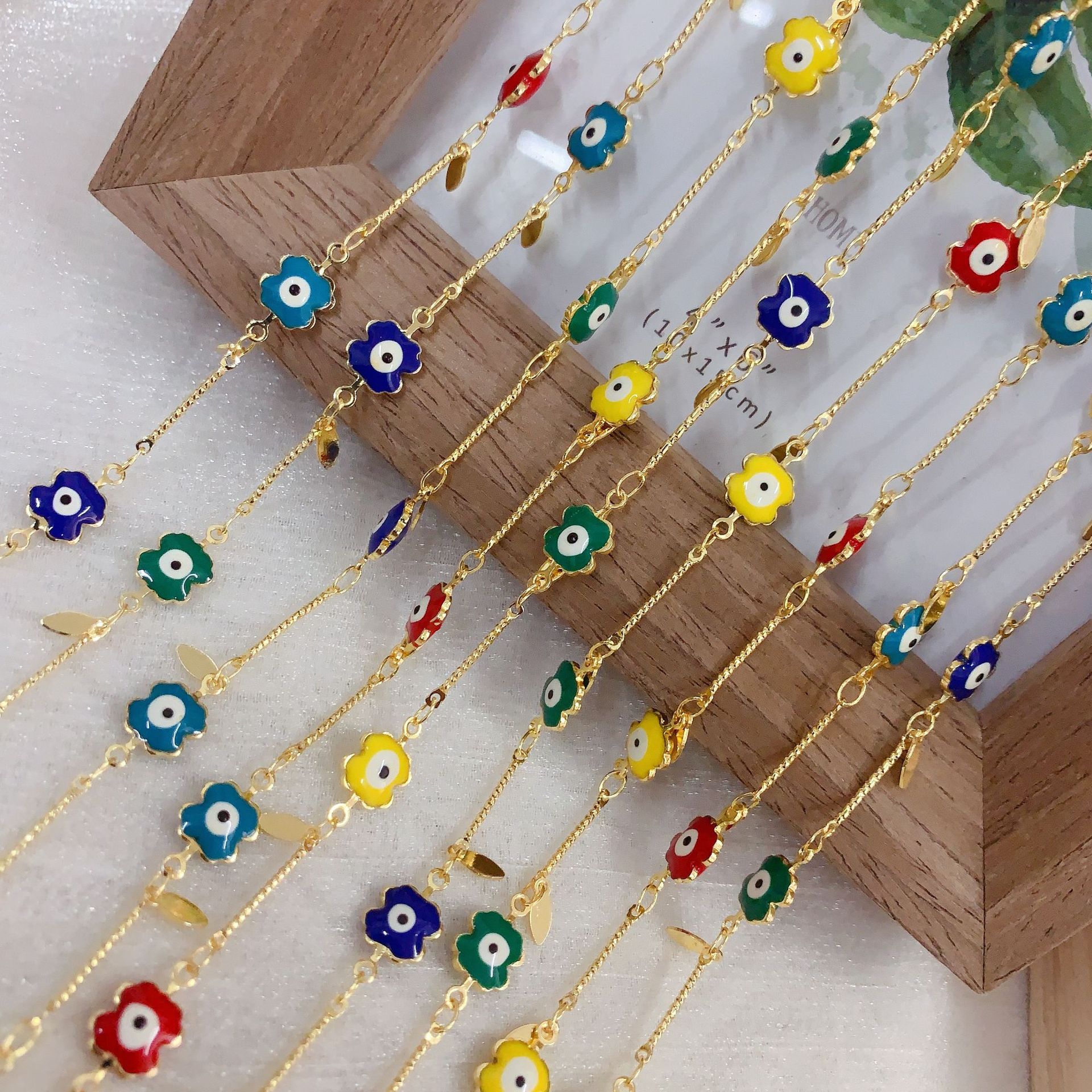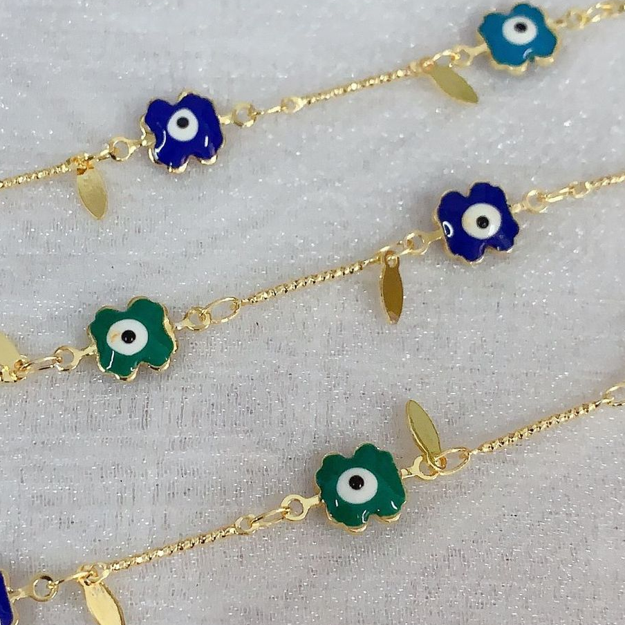 Chaînes de bijouterie de mauvais œil, laiton, fleur, motif de mauvais œil & émail, multicolore, protéger l'environnement, sans nickel, plomb et cadmium Vendu par m