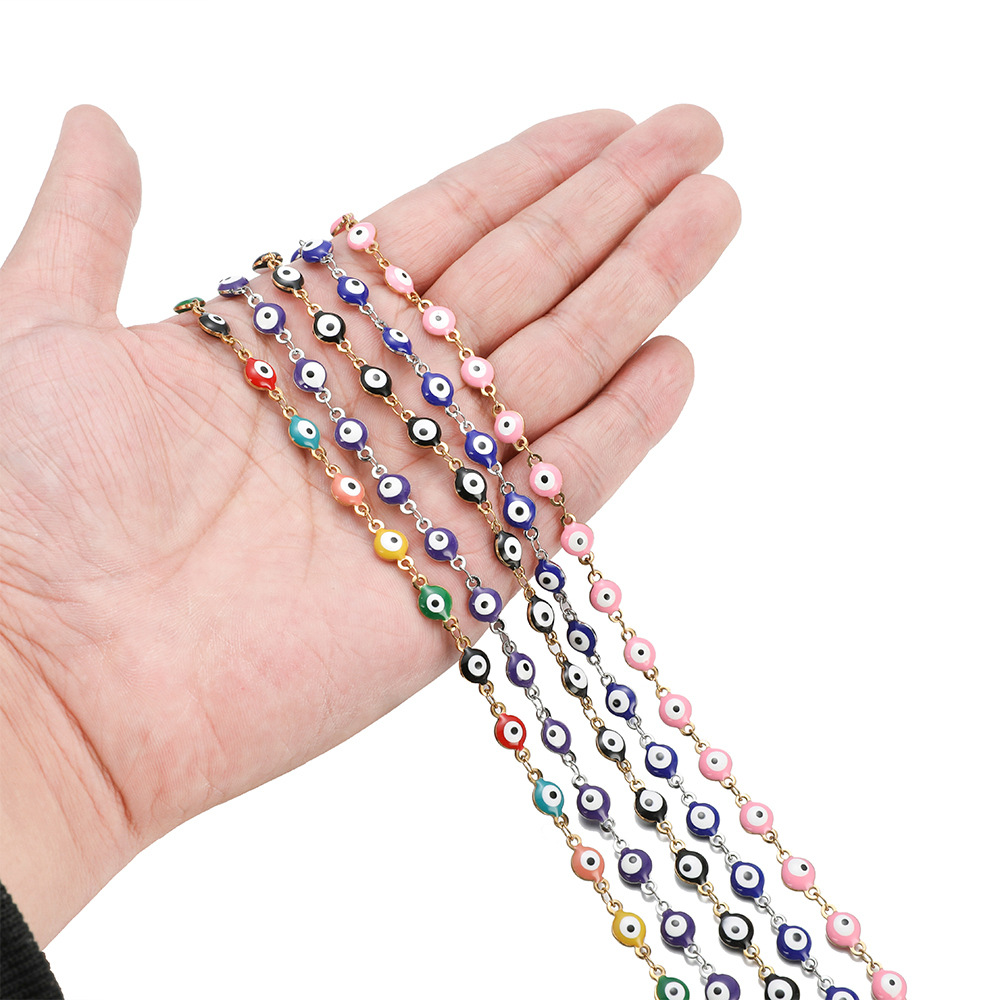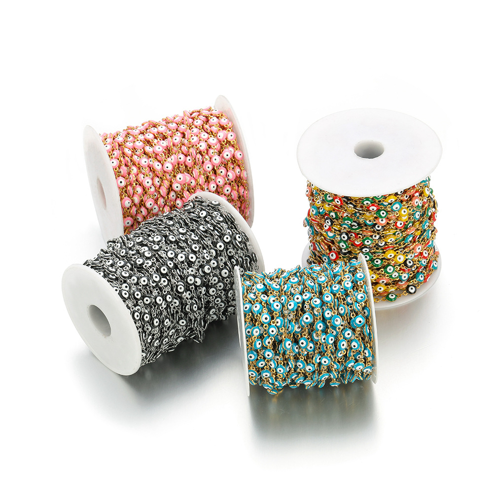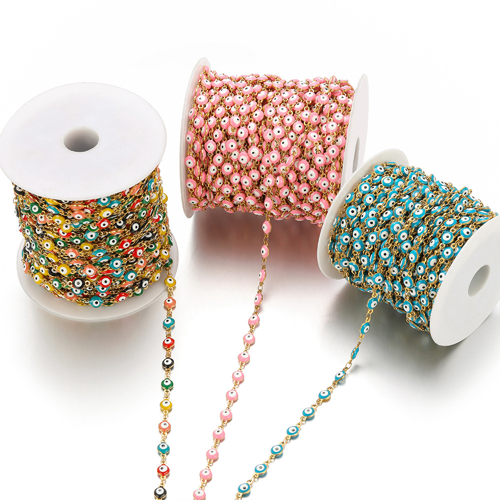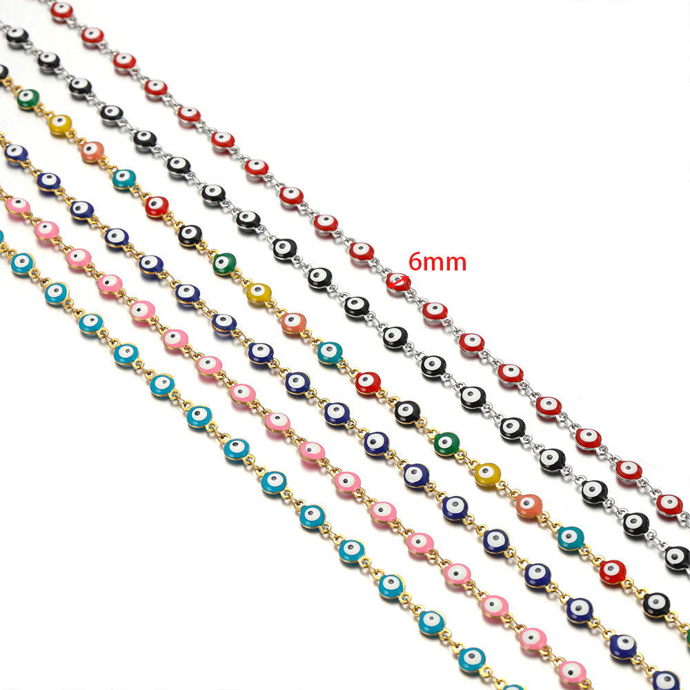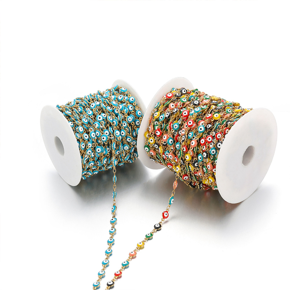 Chaînes de bijouterie de mauvais œil, Acier inoxydable 304, Placage de couleur d'or, DIY & émail, plus de couleurs à choisir, Vendu par m