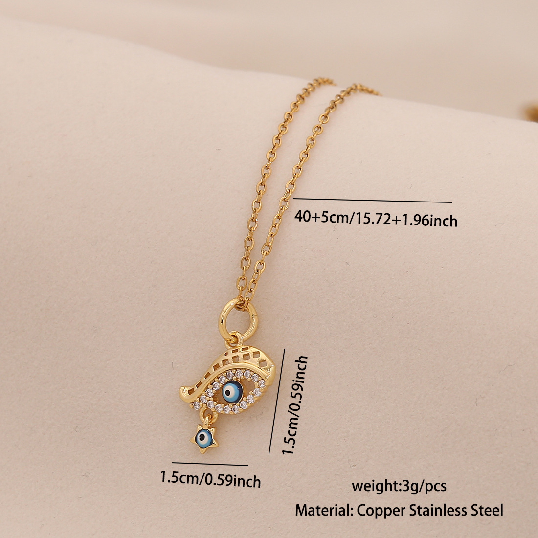 Collier Evil Eye bijoux, Acier inoxydable 304, avec 1.96 Inch chaînes de rallonge, Placage, styles différents pour le choix & pour femme & émail & avec strass, doré, Longueur:15.72 pouce, Vendu par PC