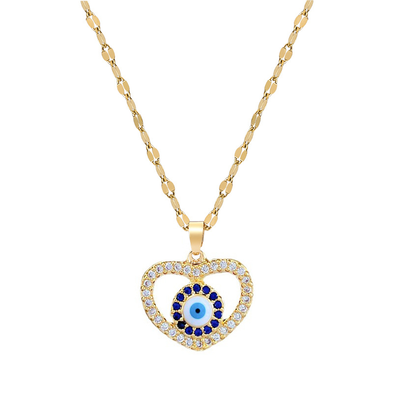 Collier Evil Eye bijoux, laiton, avec Acier titane, Placage, pavé de micro zircon & pour femme & émail & creux, doré, Longueur:Environ 21-50 cm, Vendu par PC