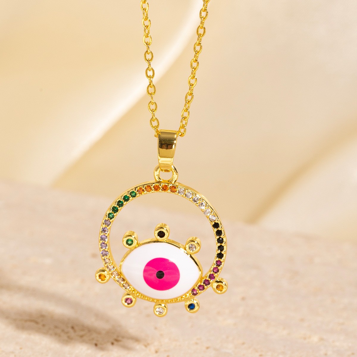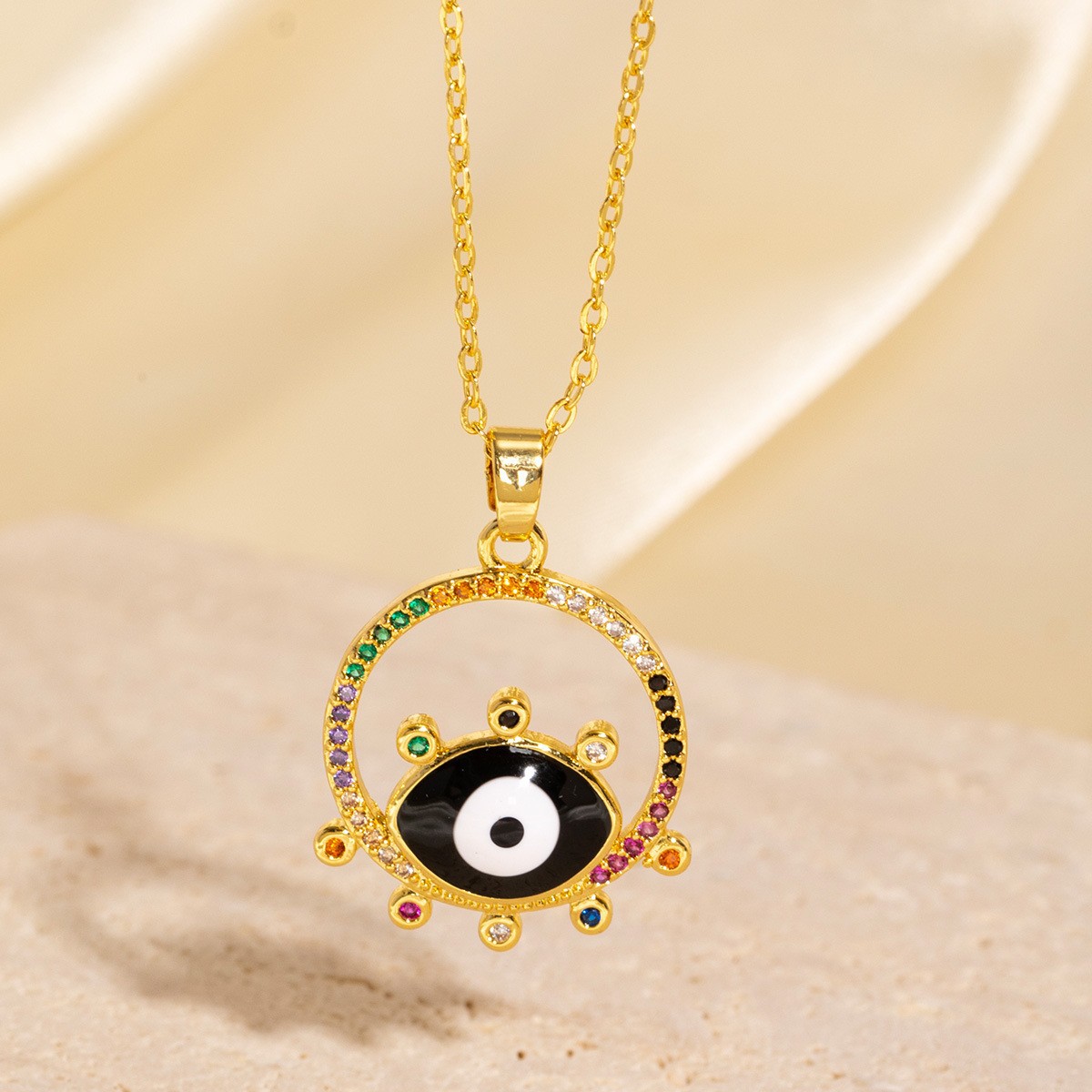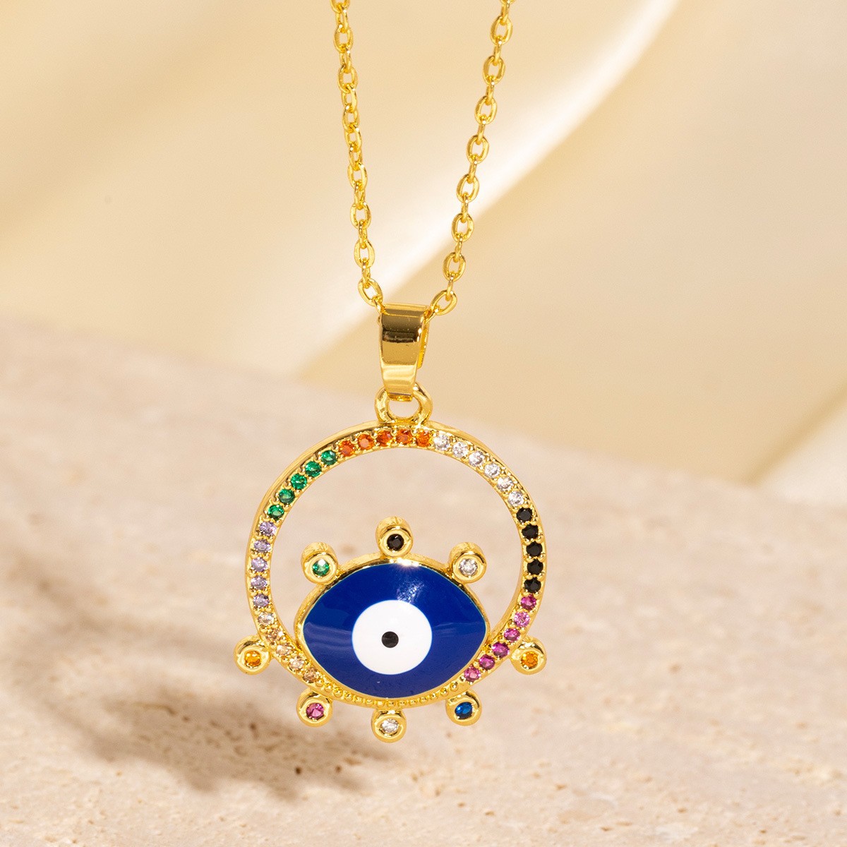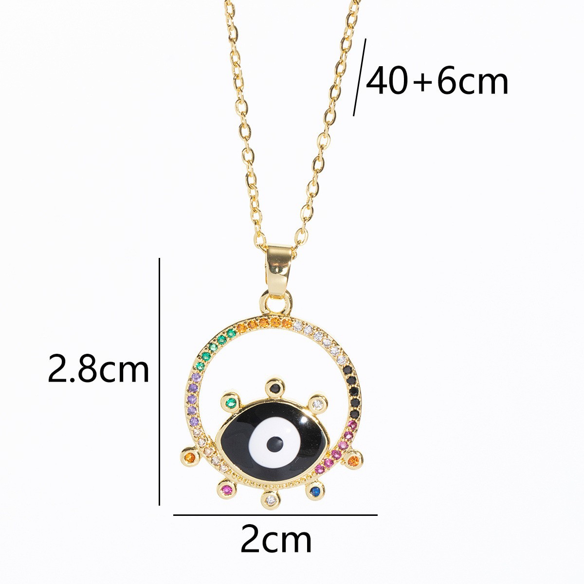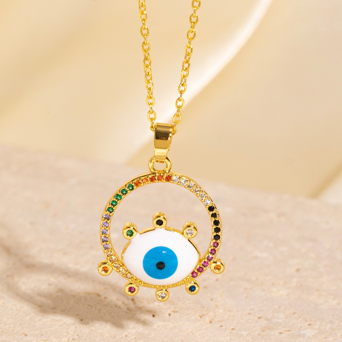 Collier Evil Eye bijoux, laiton, Rond, Plaqué or 18K, pavé de micro zircon & pour femme & émail & creux, Vendu par PC